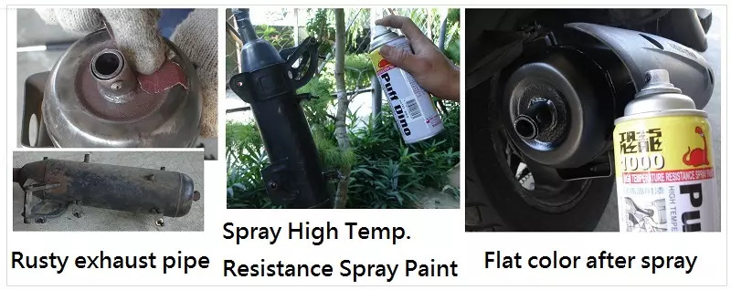 2. High Temp. Resistance Spray Paint needs hight temperature process to fully hardening. If apply on surface area that does not contact hight temperature, than the paint will not comply crosslinking reaction. It may resulting whitening during raining days.