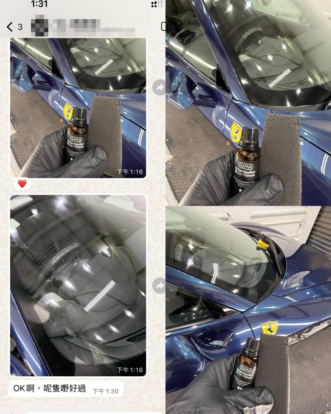 Oil-film remover and strong water repellent in one. Quickly clears glass and leaves a long-lasting rain-repellent coat for improved visibility. Apply on dry glass, wait 10–15 min, rinse and wipe. Let cure 8 hours or under sun for best results.