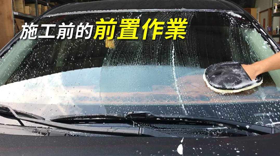 施工前,切記一定要先將玻璃上的髒汙、油膜及殘留的撥水劑清除乾淨,這樣會使的新上的玻璃鍍膜耐久度更佳。同時,也請留意雨刷膠條是否需清理及更換,因為舊雨刷會殘留油膜,再次使用又會將油膜重新附著於玻璃上。而清理及更換方式小編已在之前的文章介紹過,在此就不多做講解,有興趣的車友可參考:第一次去除玻璃油膜就上手