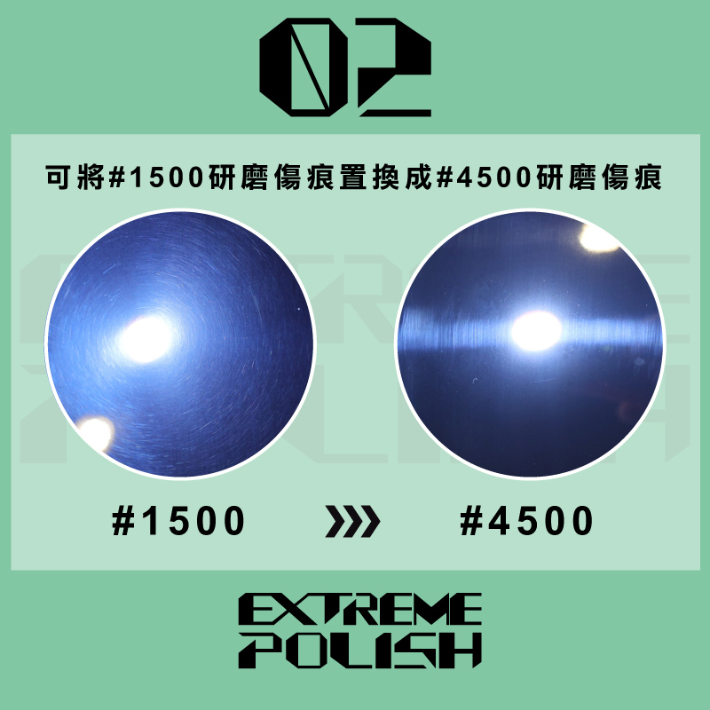 可將#1500研磨傷痕置換成#4500研磨傷痕。