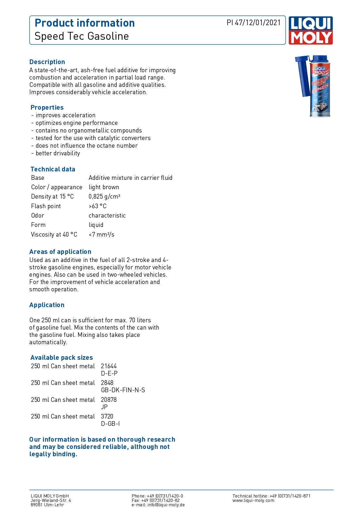本產品為高科技的燃油添加劑,專門改善加速性和提高油門反應速度,能讓汽車啟動更順暢,運轉更流暢,優化汽車的性能並提高您駕駛的樂趣。經觸媒轉換器和渦輪增壓裝置測試。