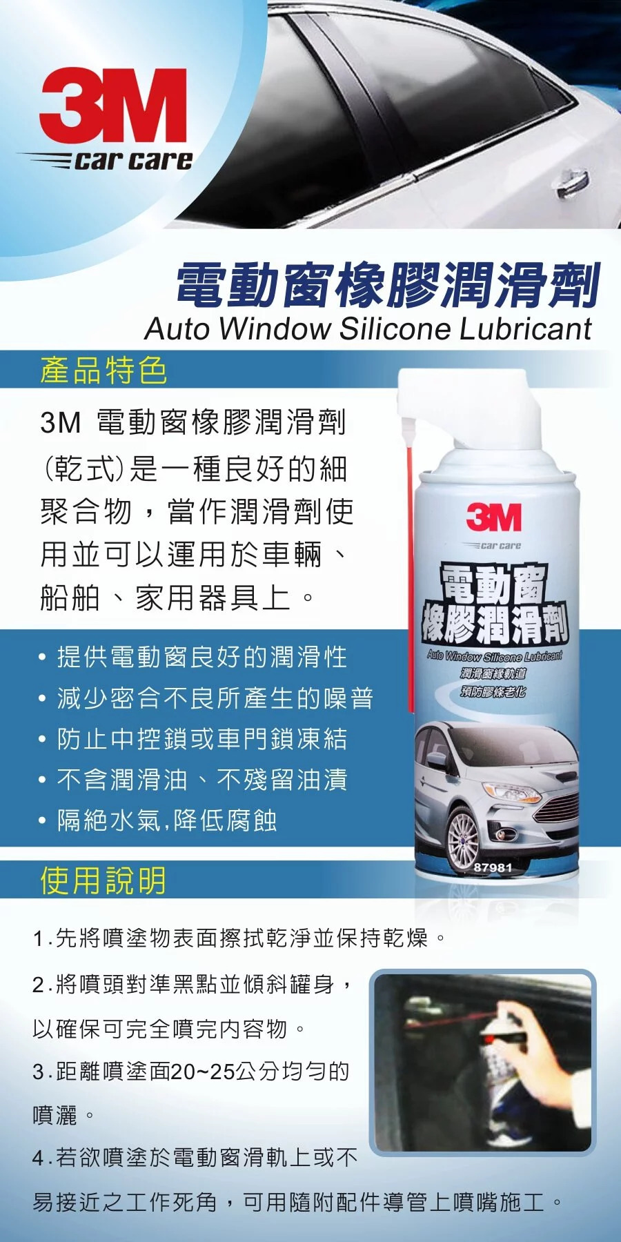 可有效潤滑電動窗凹槽或滑道,避免傳動負荷過重,而損壞馬達、傳動機件及零件