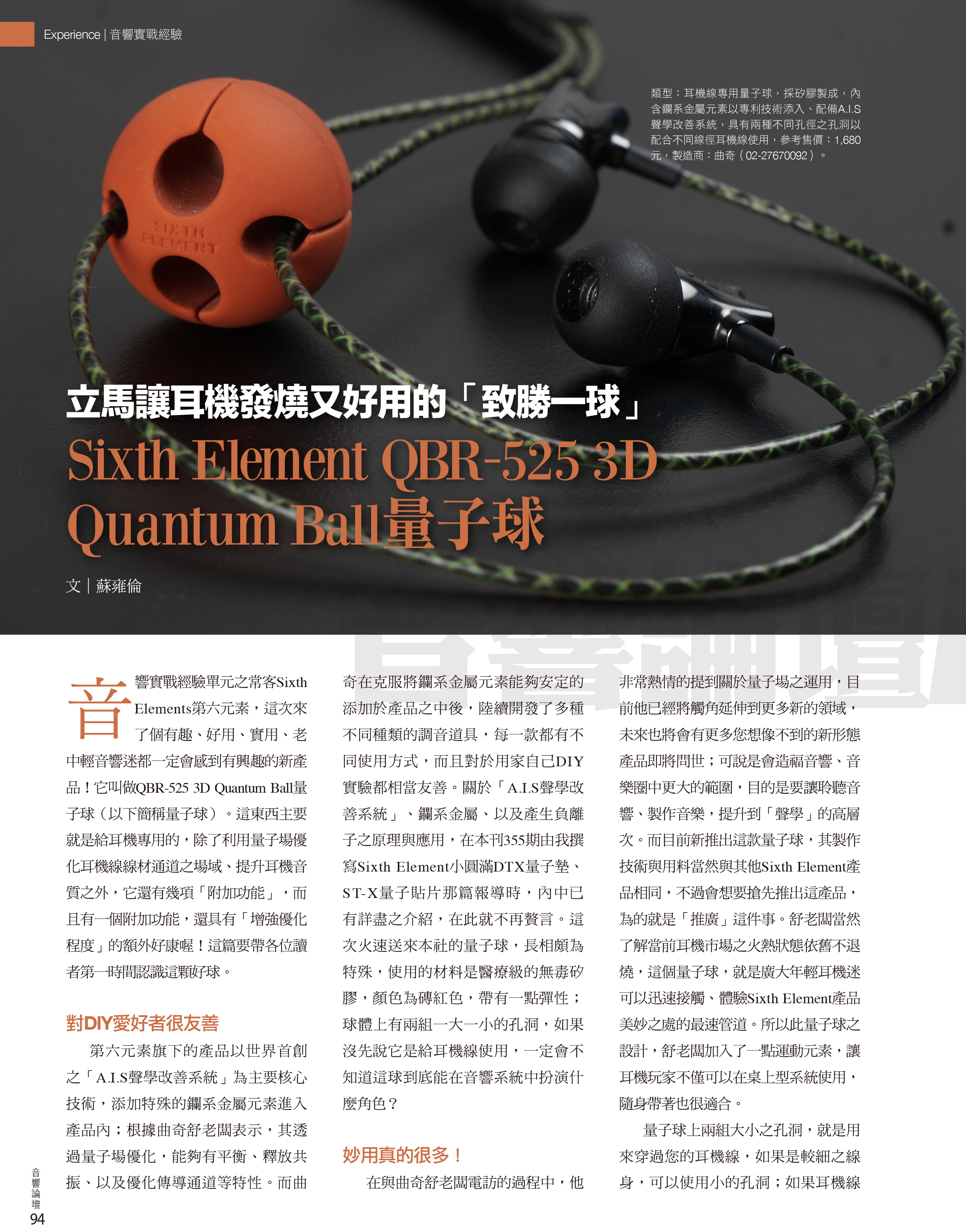 (量子小球PLUS) QBR-525 3D Quantum Ball (PLUS),支援有線耳機、數位串流,環繞套用在耳機傳輸線上。
