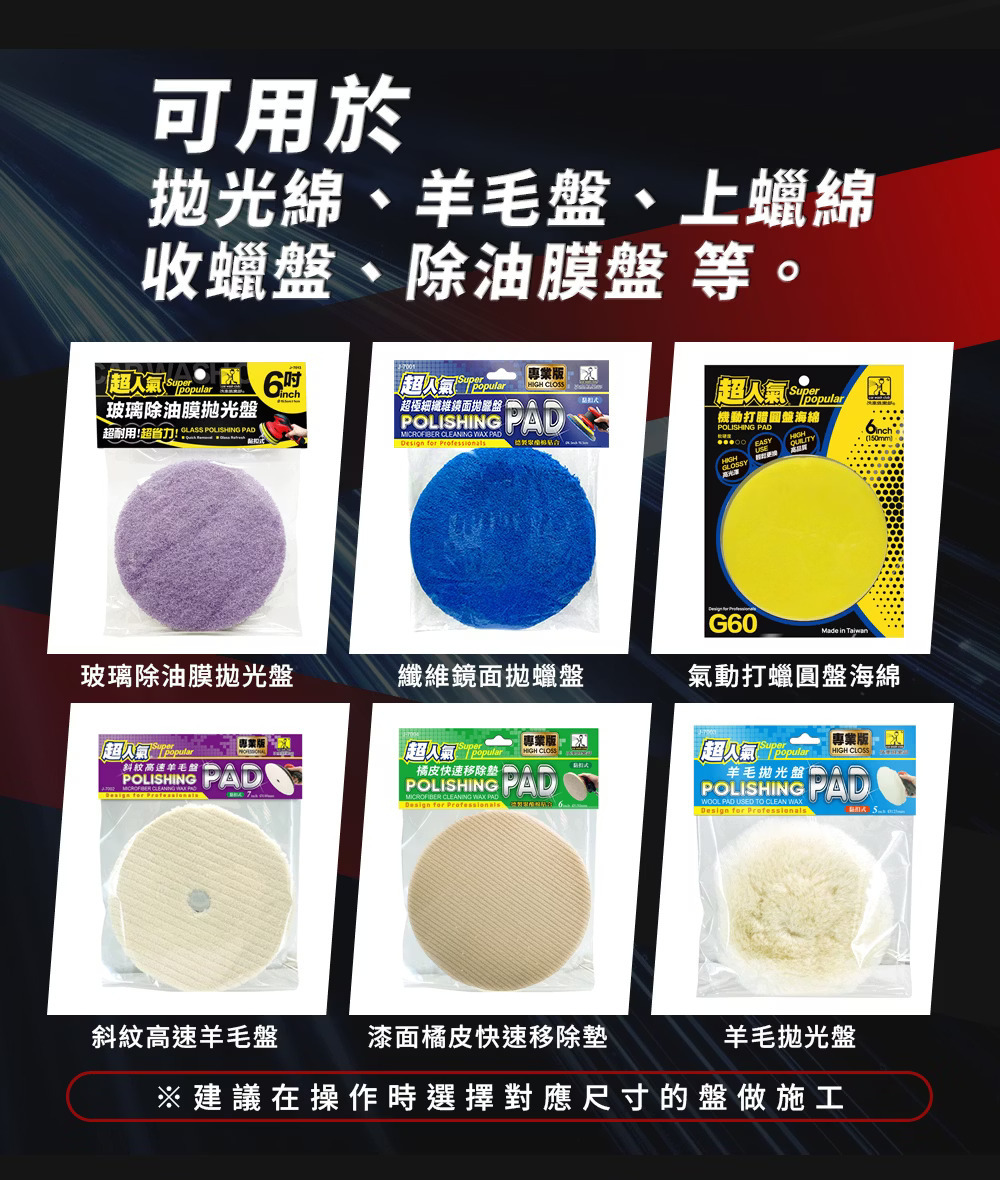 此產品為4吋底盤,建議搭配4吋以上海綿或砂紙使用。
