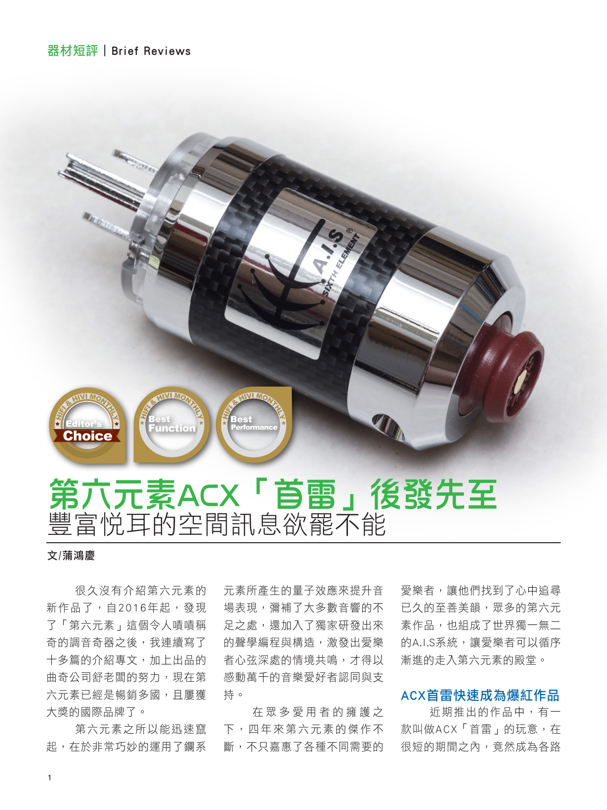 (ACX(首雷)) 透過SIXTH ELEMENT A.I.S系列產品升級。