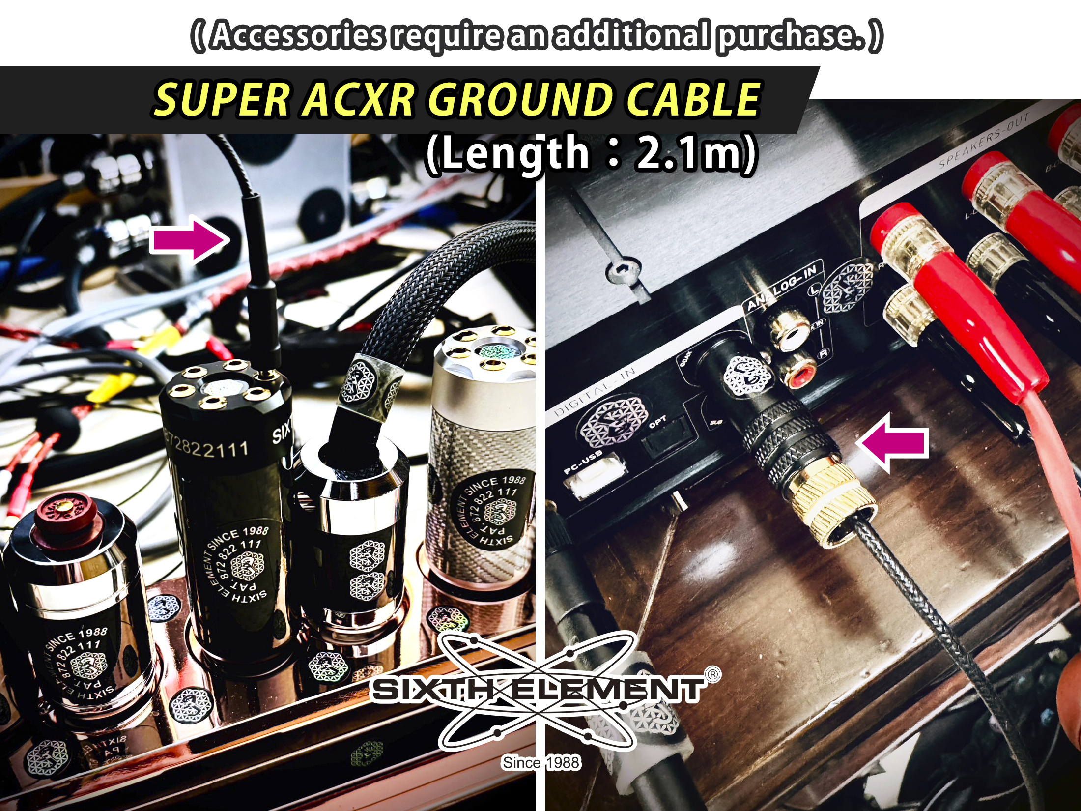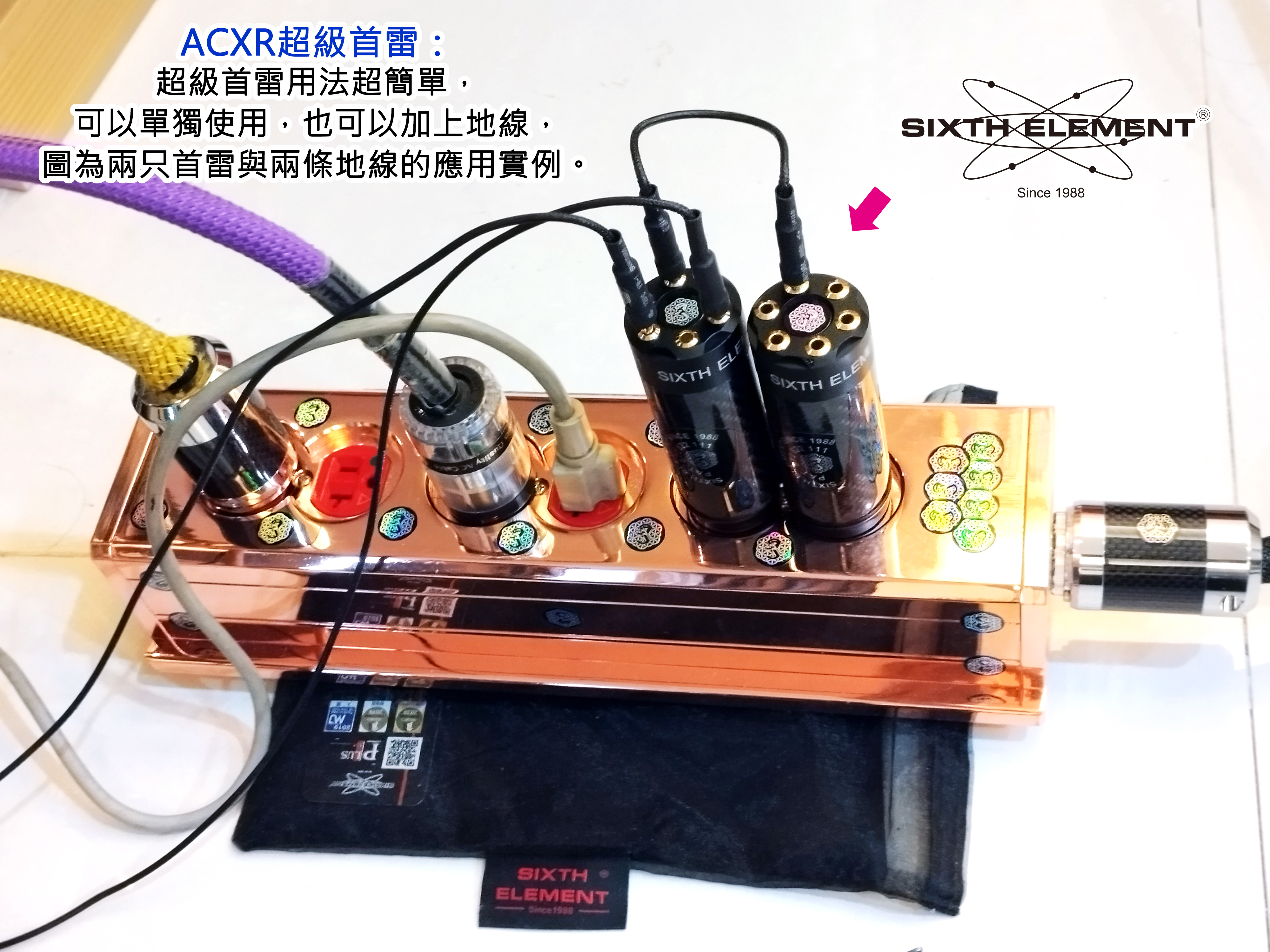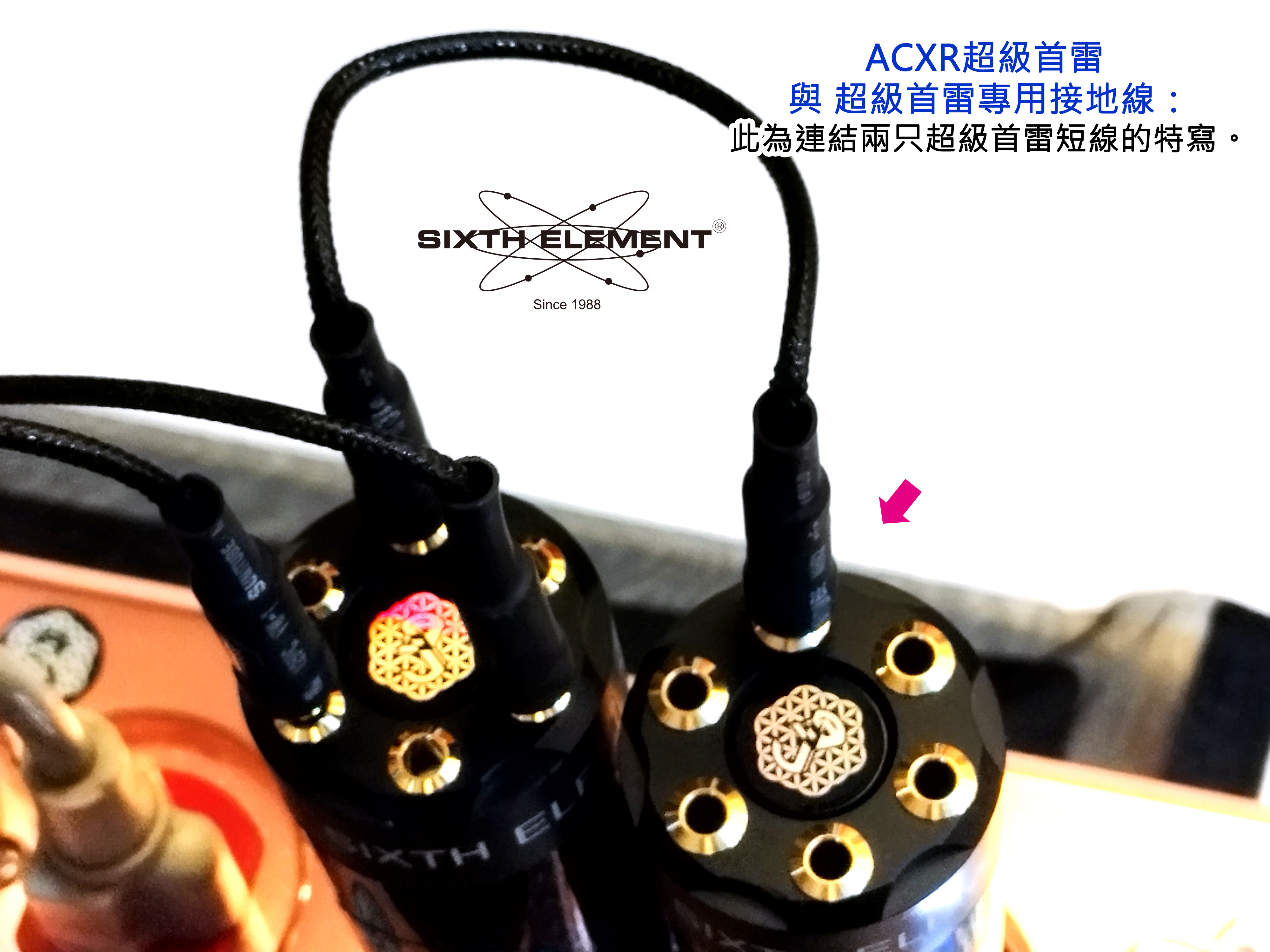 使用 超級首雷專用接地線 數量一條 (長度2.1米) 加上 超級首雷ACXR 數量一支 (超級首雷ACXR需要另外加購),就能將音響及影音系統裡所有器材的「地電位」由「超級首雷ACXR」統一,可進一步純淨接地電位不同之雜訊。