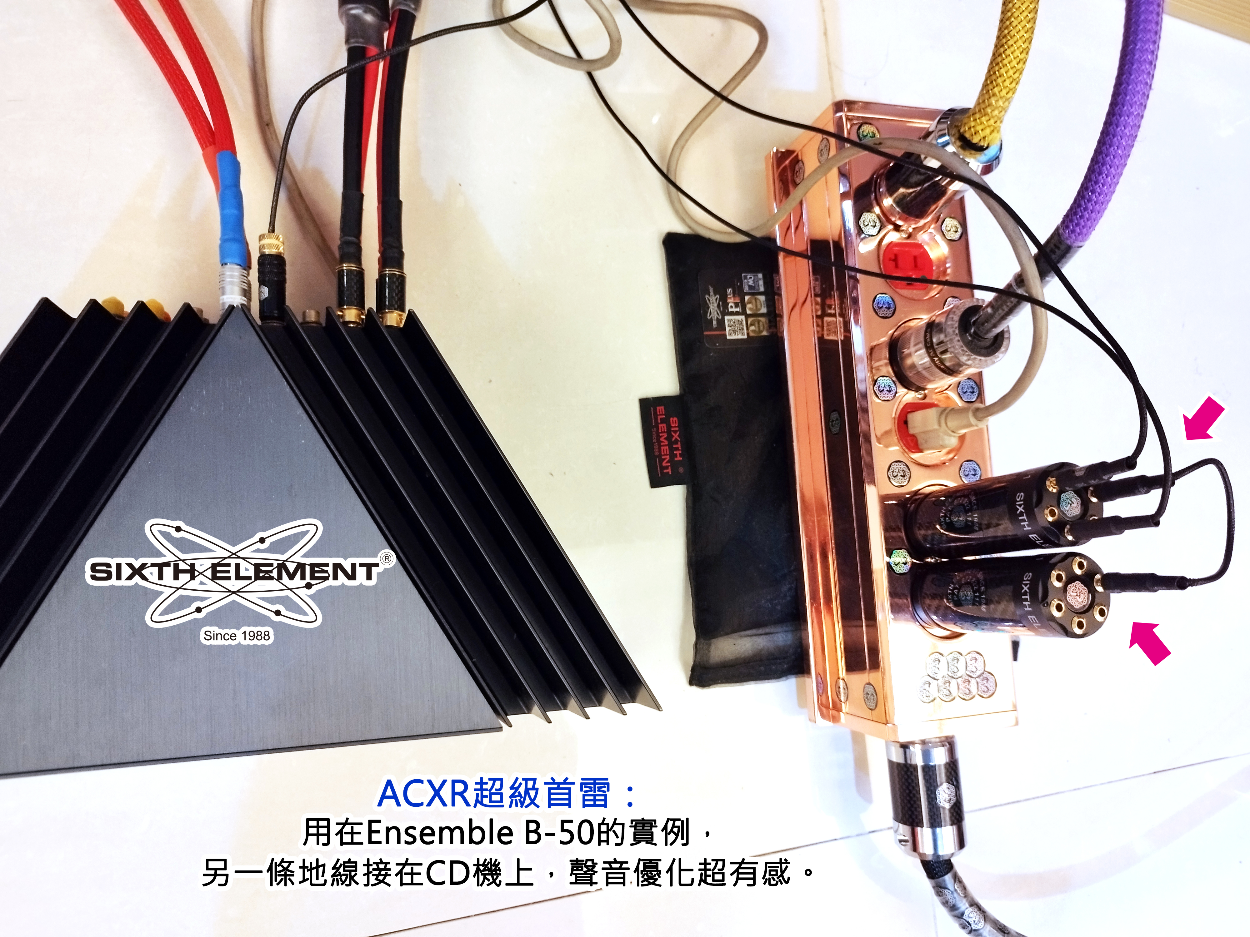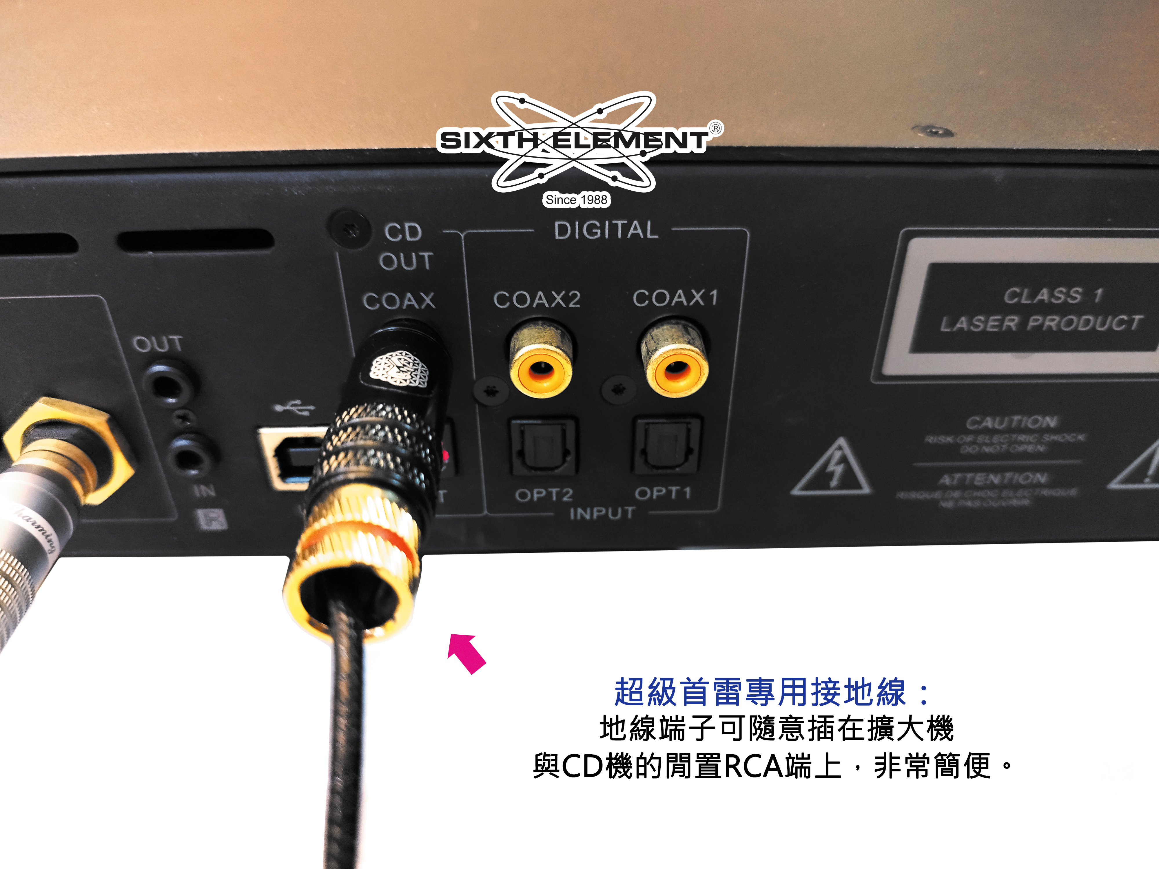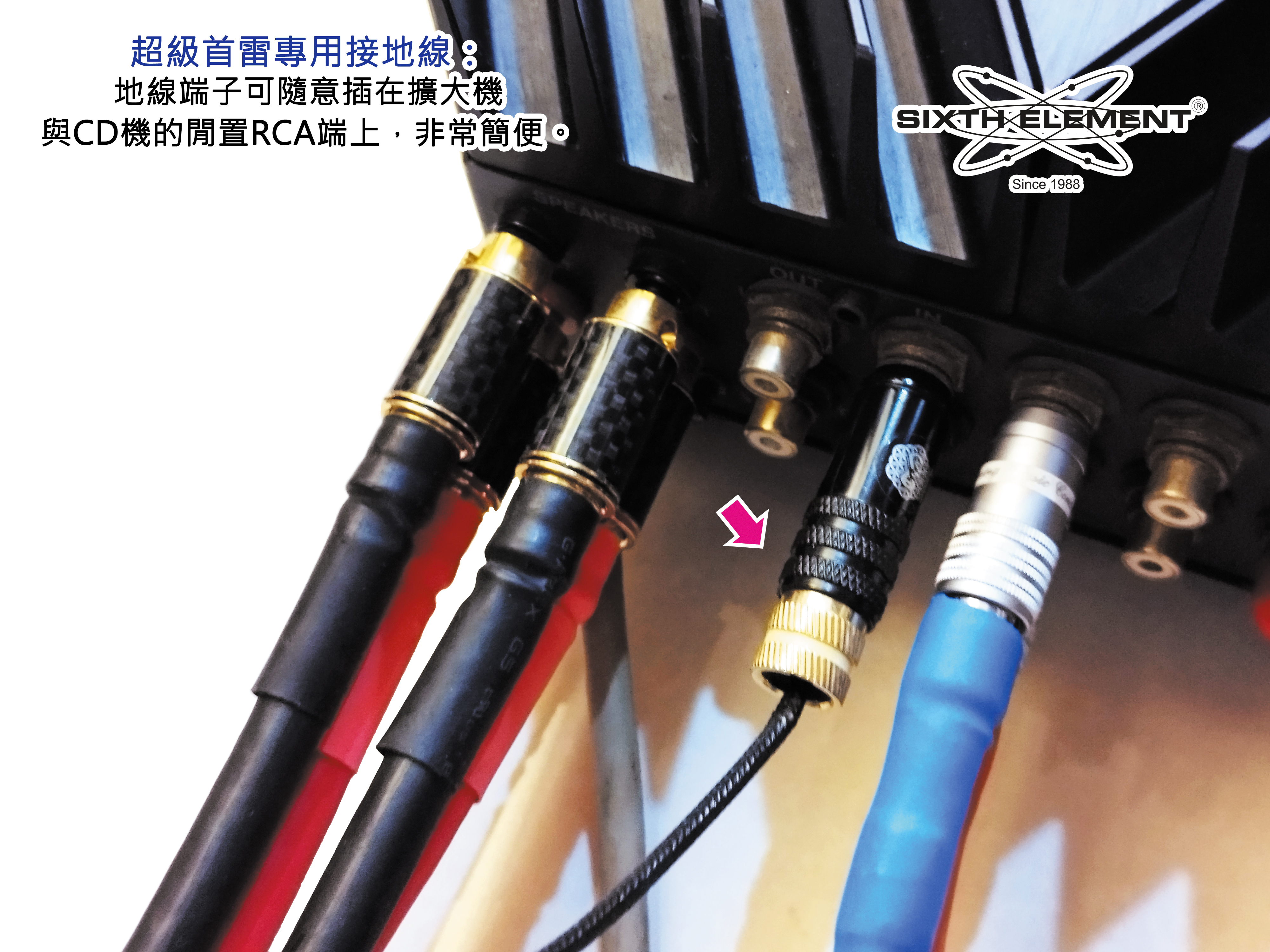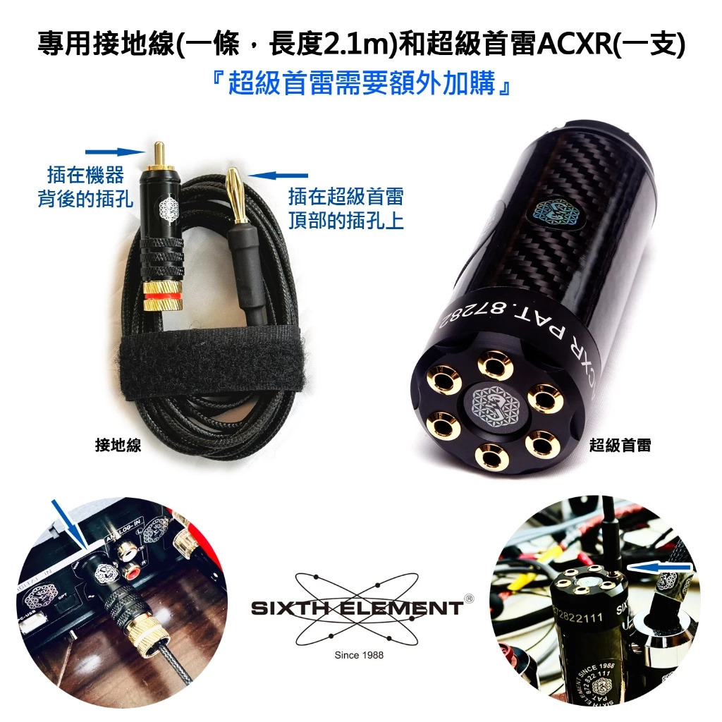 使用 超級首雷專用接地線 數量一條 (長度2.1米) 加上 超級首雷ACXR 數量一支 (超級首雷ACXR需要另外加購),就能將音響及影音系統裡所有器材的「地電位」由「超級首雷ACXR」統一,可進一步純淨接地電位不同之雜訊。