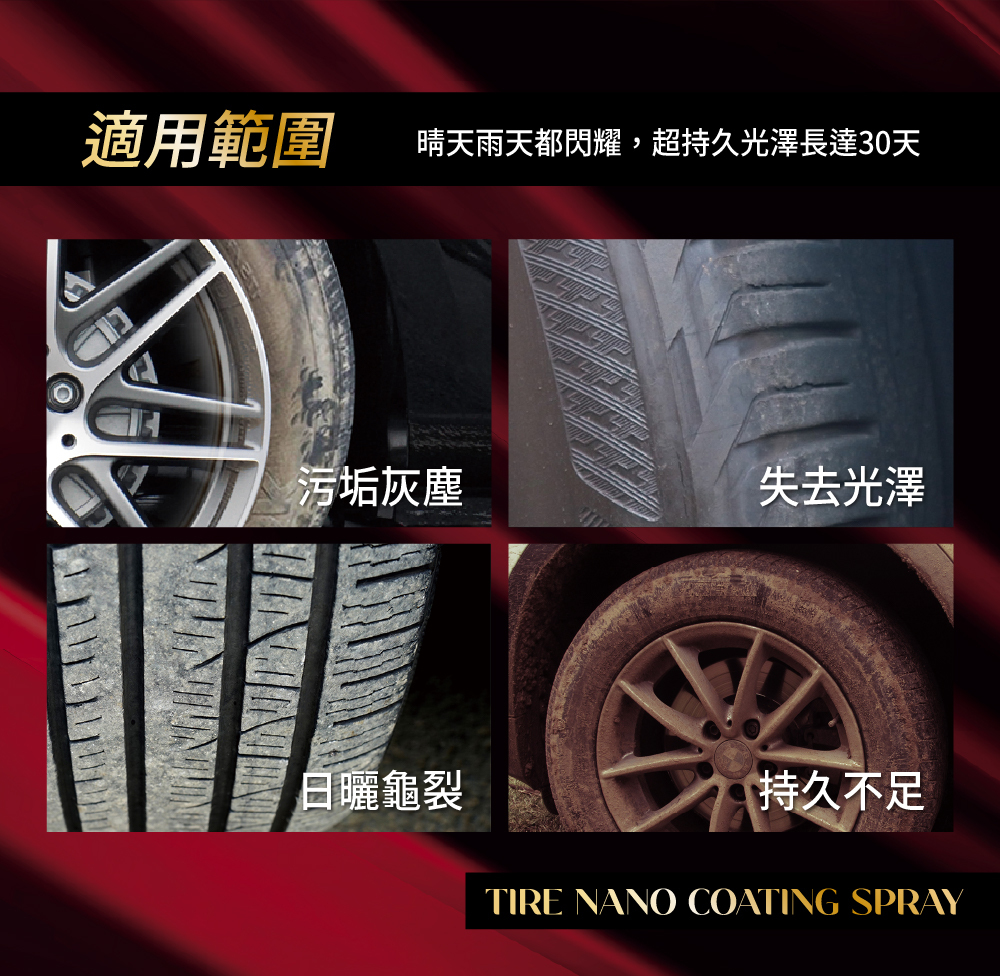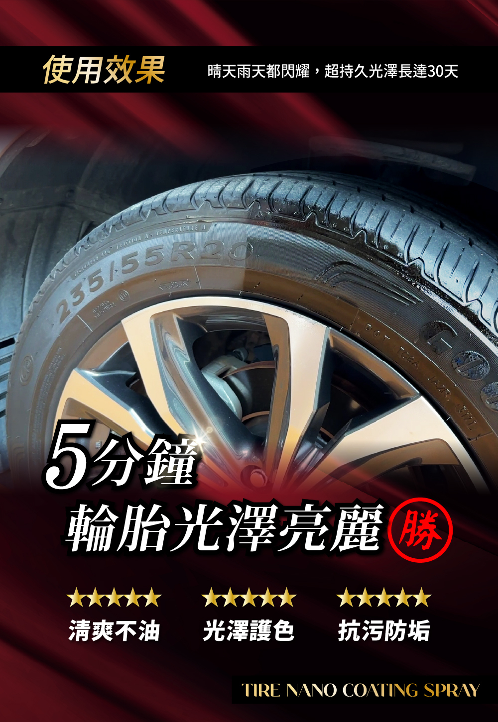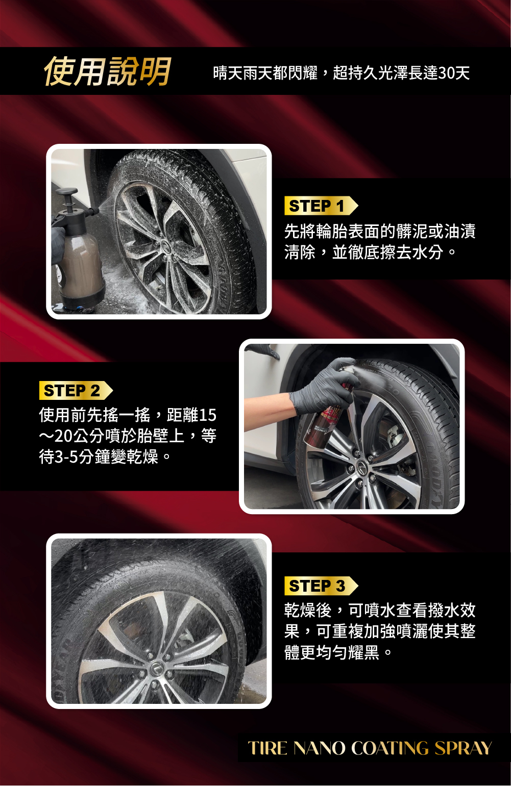 Auto Sport輪胎炫黑鍍膜噴霧,效果持久,非油性不打滑不甩油,超強防污防裂,使用後即刻有烏黑光澤感,輕鬆保護輪胎。