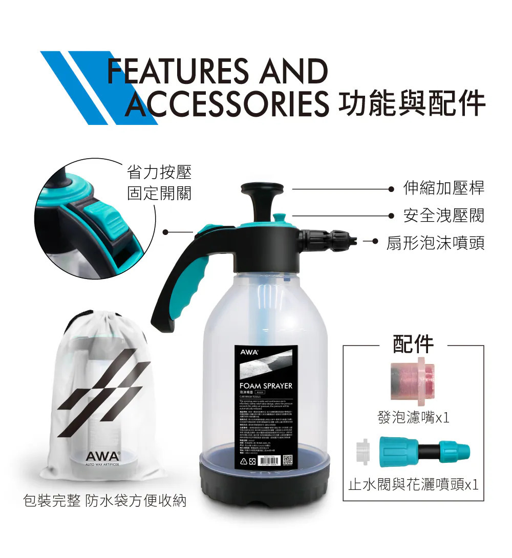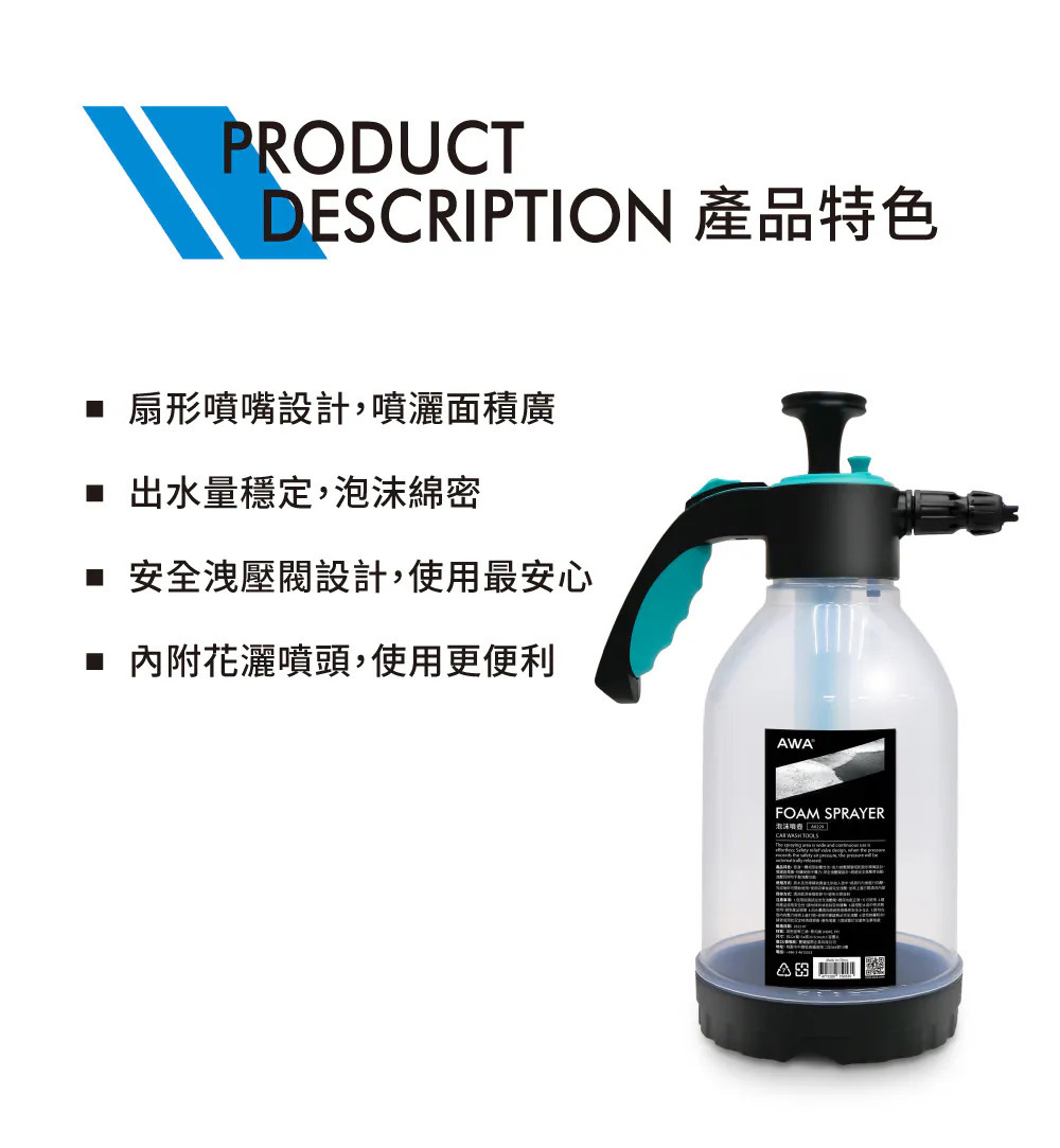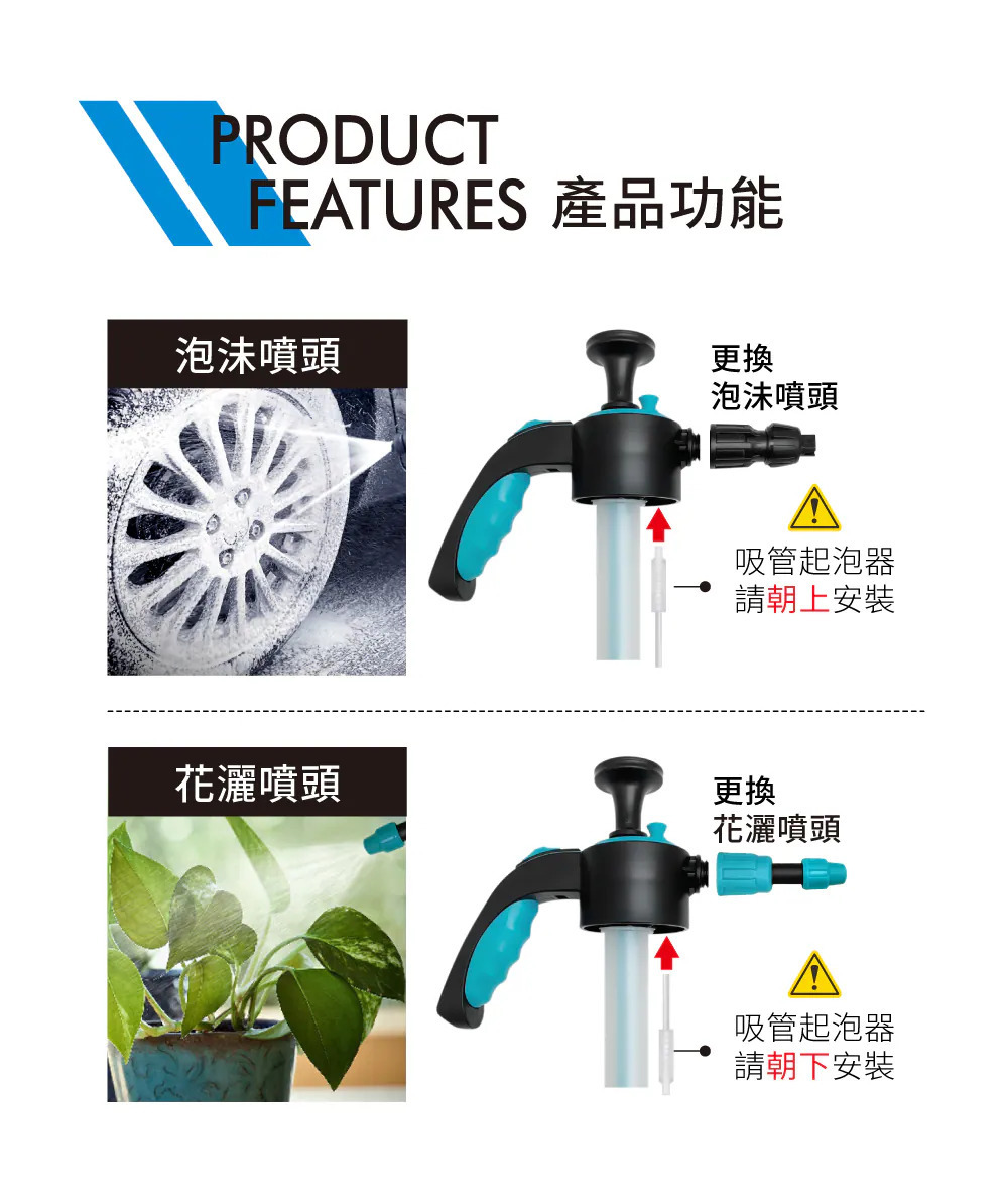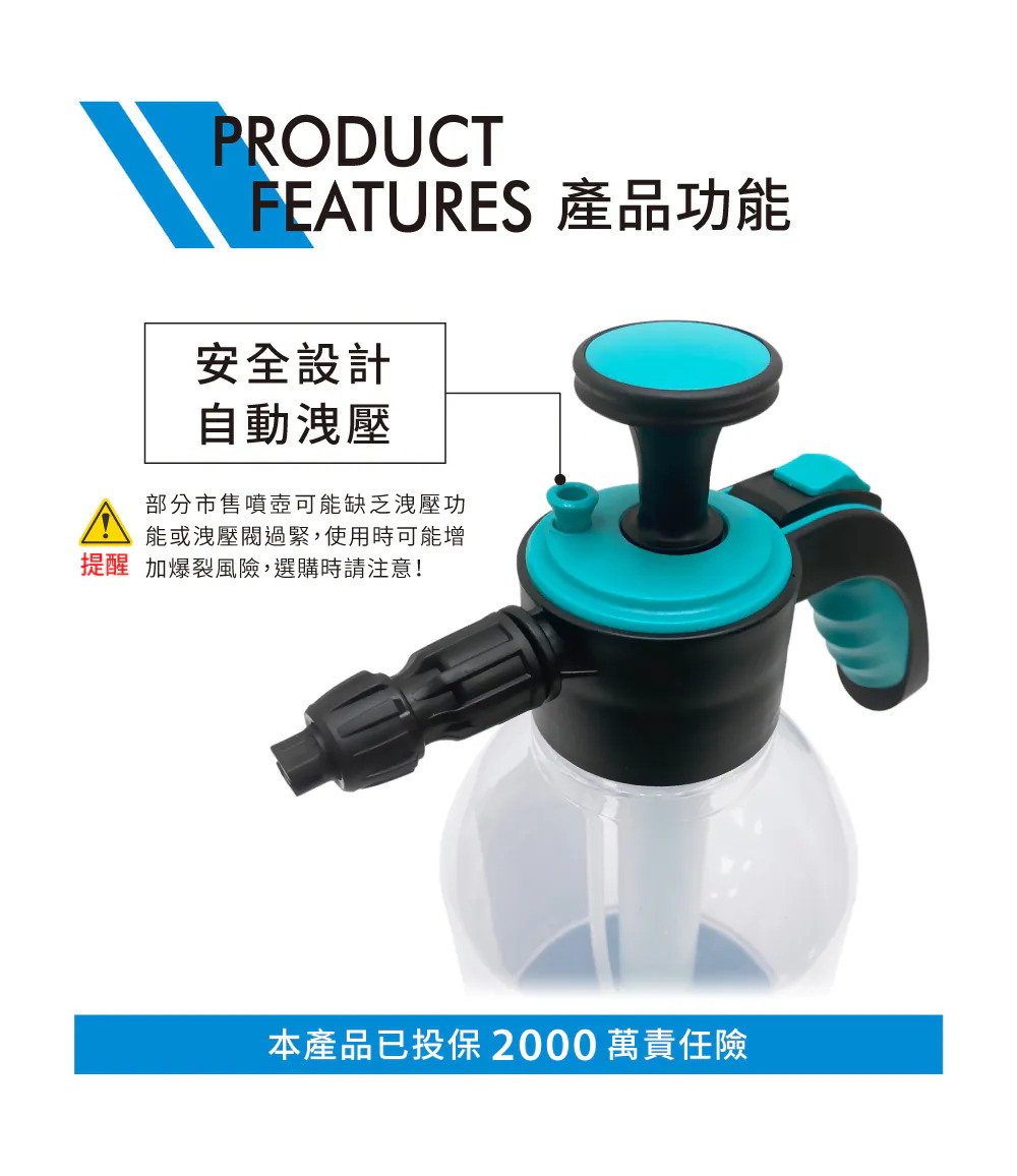 省力按壓開關搭配扇形噴嘴設計,噴灑面積廣,持續使用不費力
