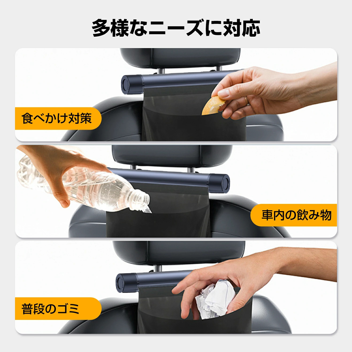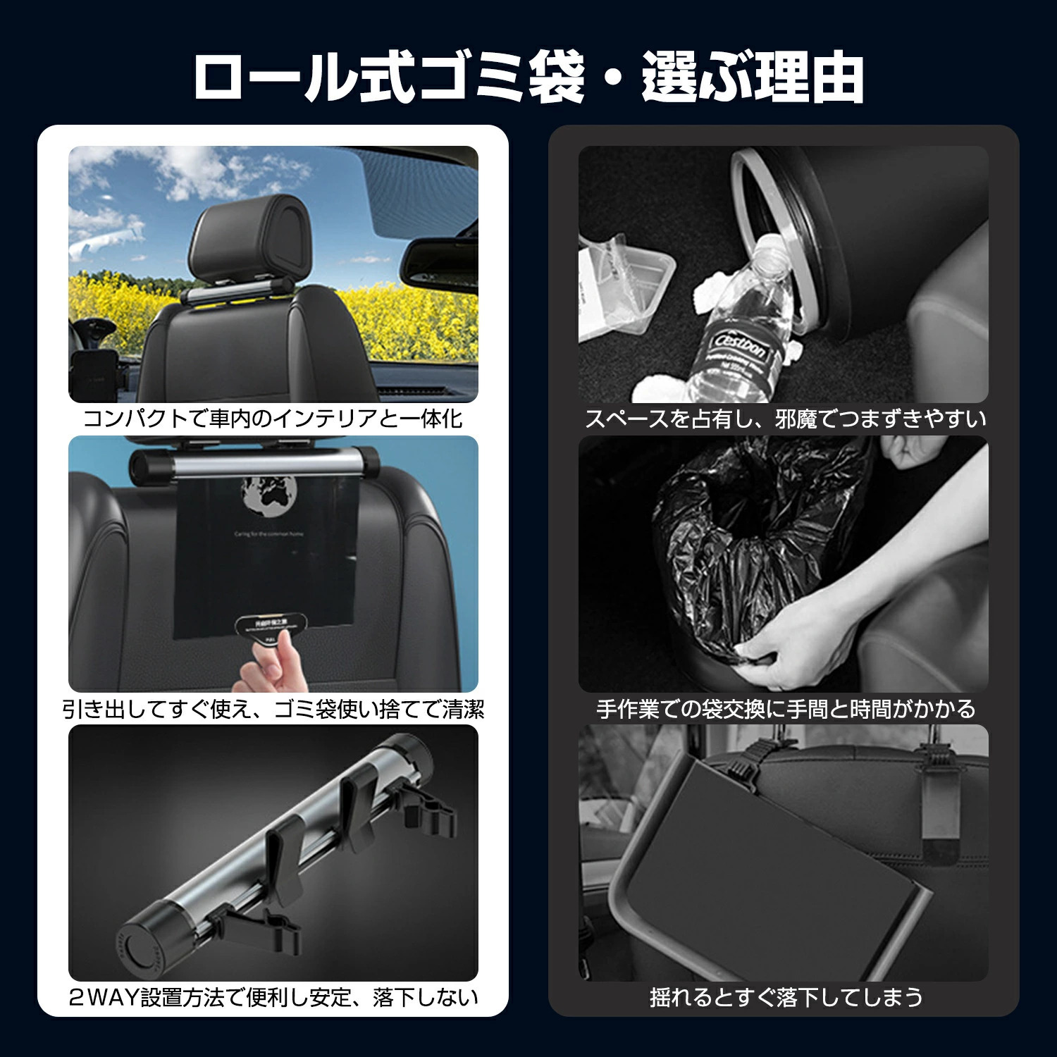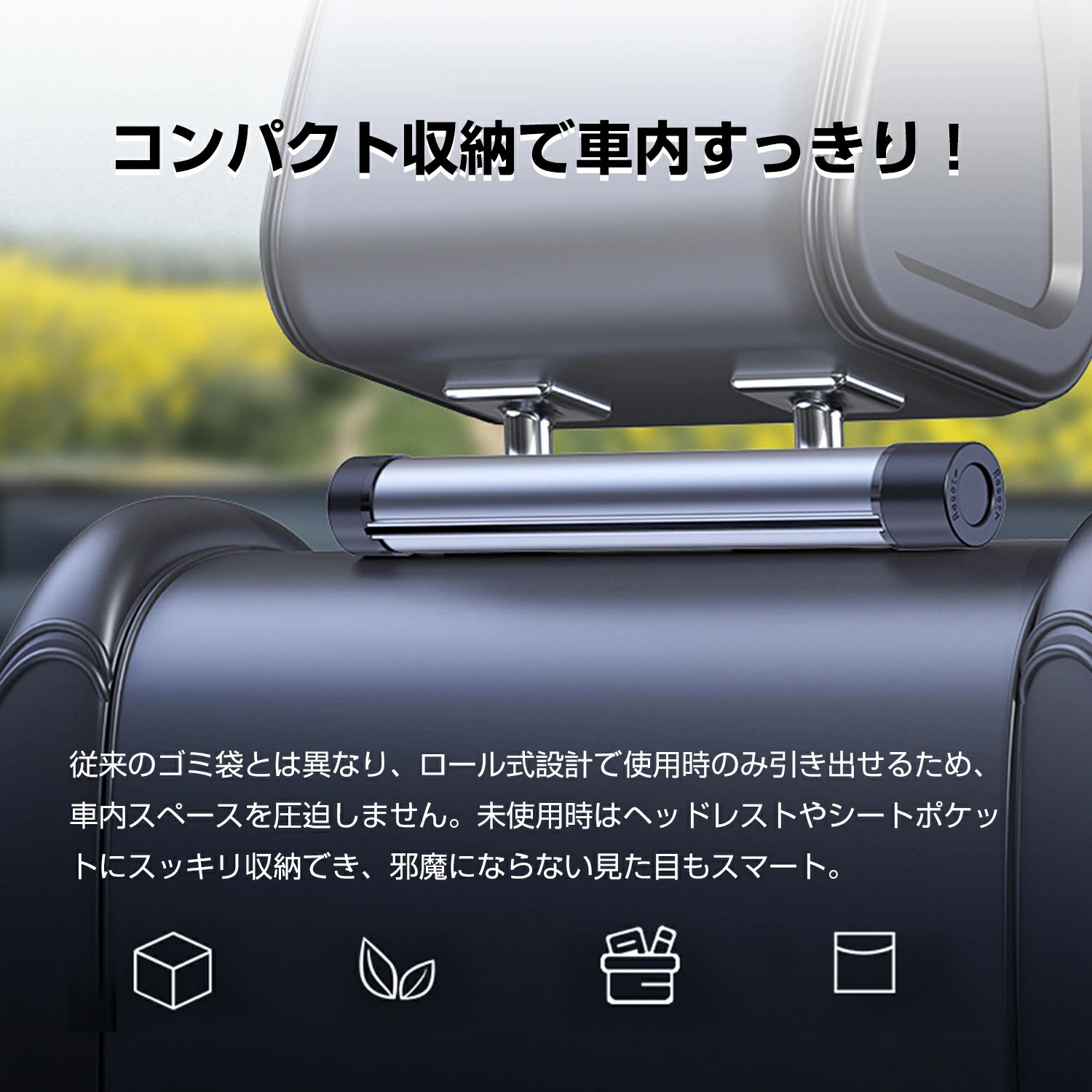 採用滾筒式設計,既節省空間又不會讓車內顯得雜亂。俐落地收納在頭枕下方或座椅口袋,外觀簡潔,完美融入汽車內裝!