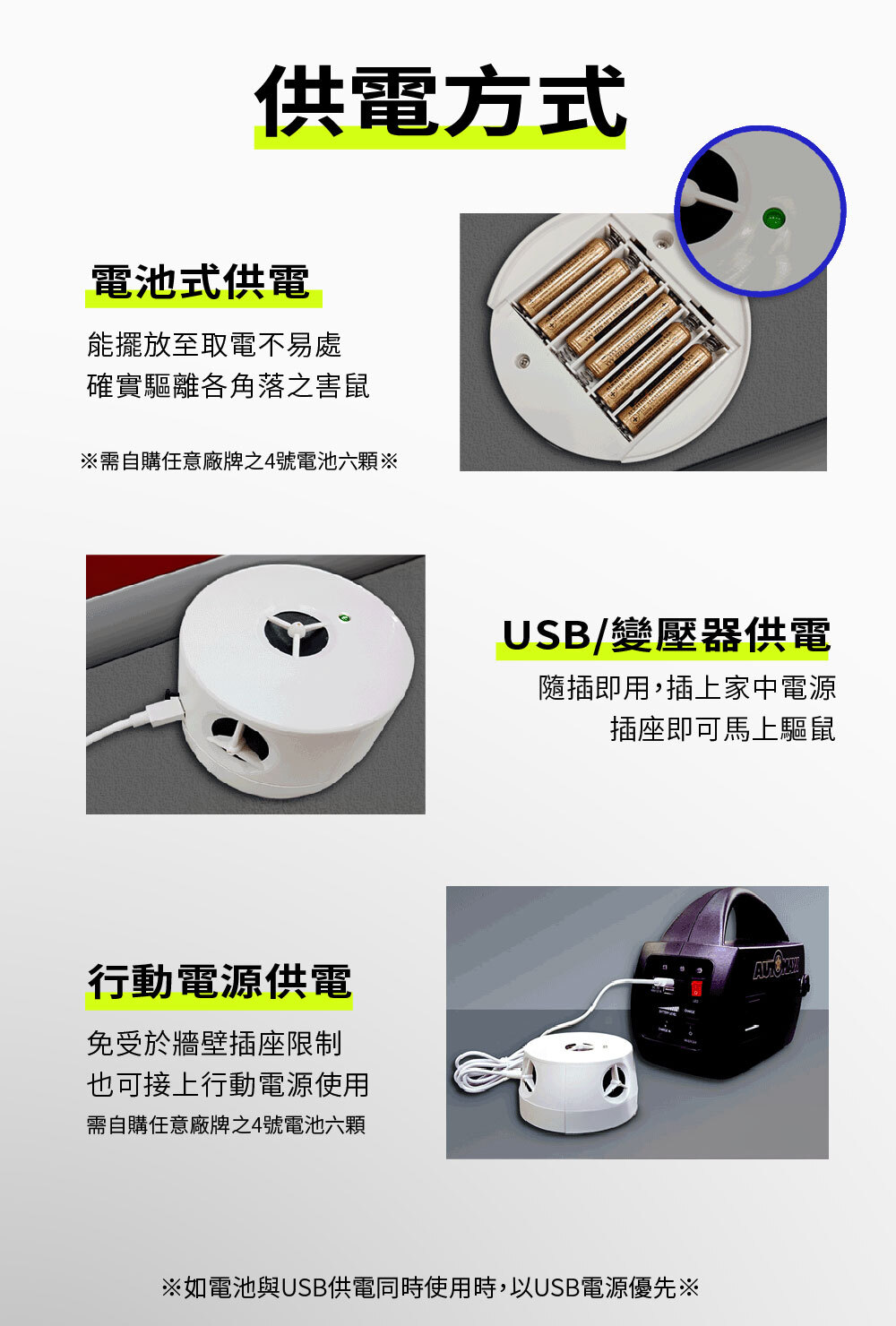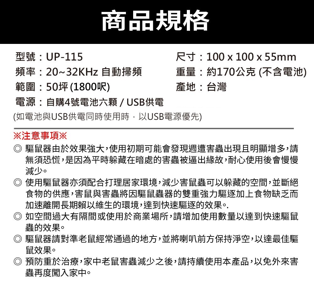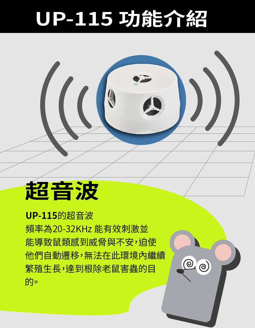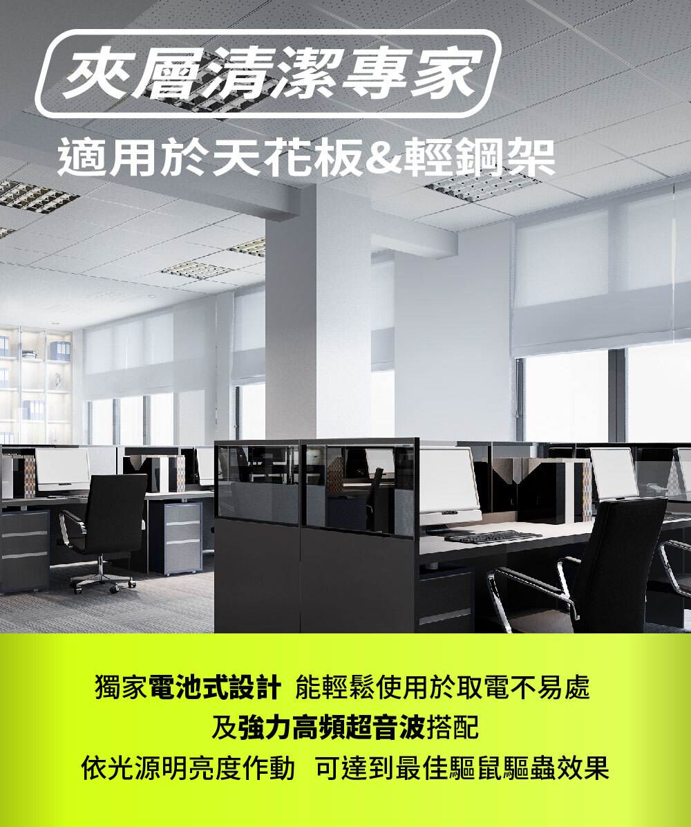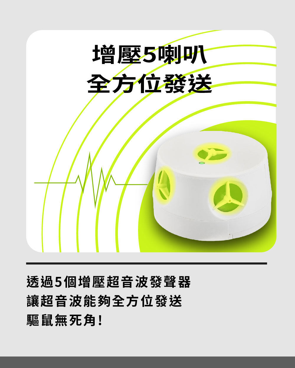 使用20~32KHz之間全範圍掃頻式變頻超音波,能有效擊退害鼠害蟲