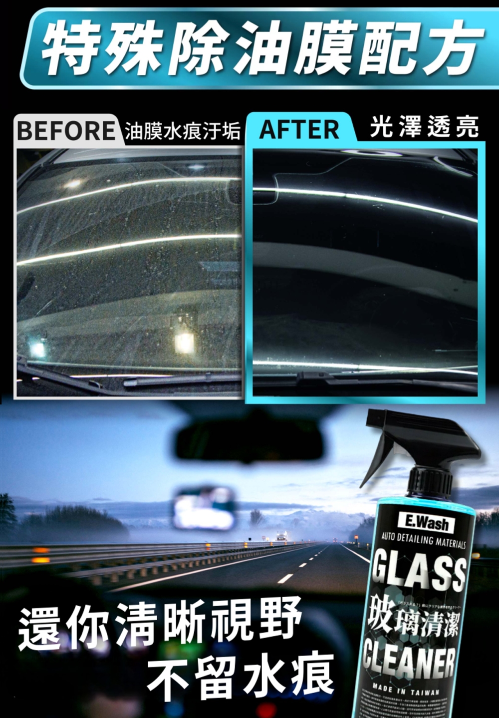 可用在汽車玻璃內外,清潔後不留痕跡。