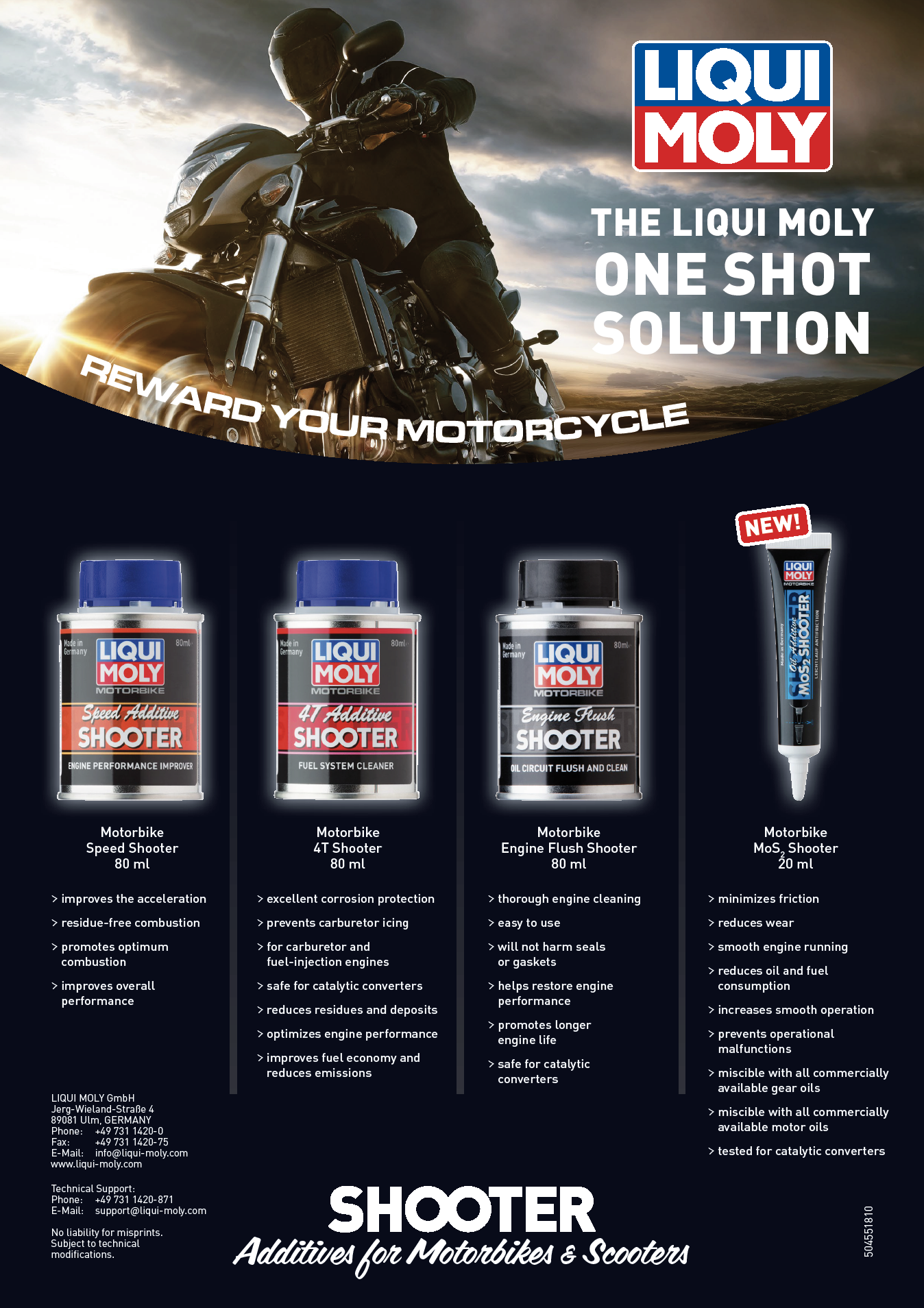 針對引擎內部積碳沉積物的高效清潔劑,可以溶解油泥與硬質沉澱物。所有油溶性殘留物會被包裹並懸浮於添加劑中,於下次換油時清除,保養後可回復引擎最佳性能。