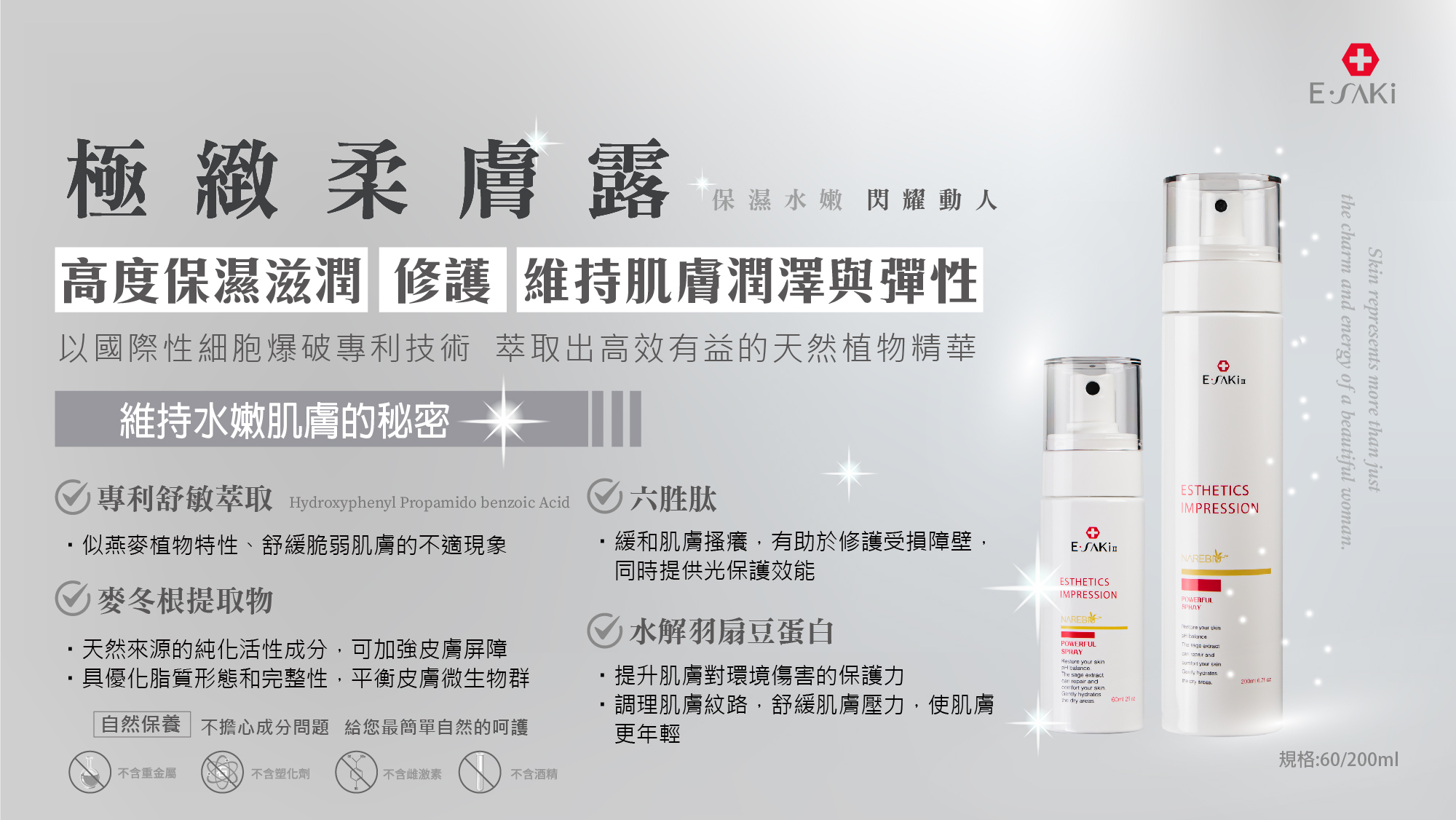 高度保濕舒緩化妝水,以國家專利技術萃取出高效有益的天然植物精華,複合精粹有極高肌膚修護能力,結合多種胜肽、天然保濕因子與抗氧化物,有效提升肌膚健康活力。可舒緩肌膚不適感、恢復水嫩感,柔軟肌膚粗糙、讓毛孔細緻,調理肌膚油水平衡。