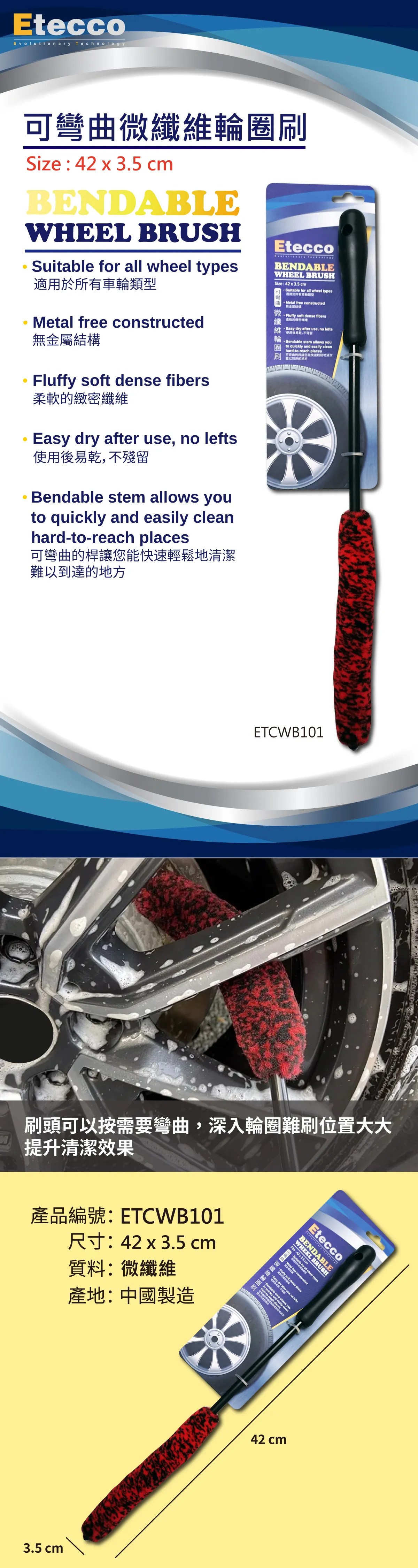 刷頭可以按需要彎曲,深入輪圈難刷位置
