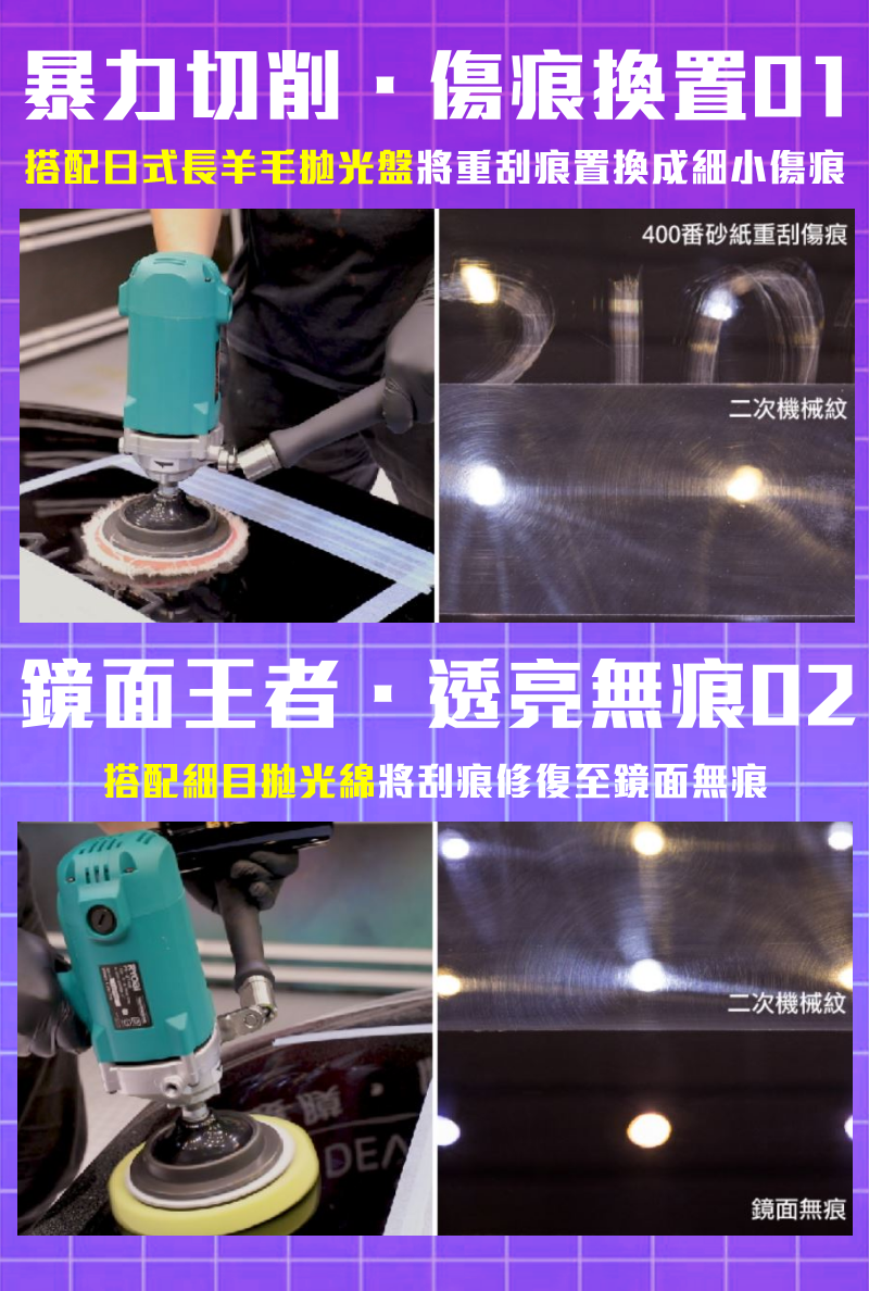 建議搭配鏡面王者將漆面修復至鏡面無痕。