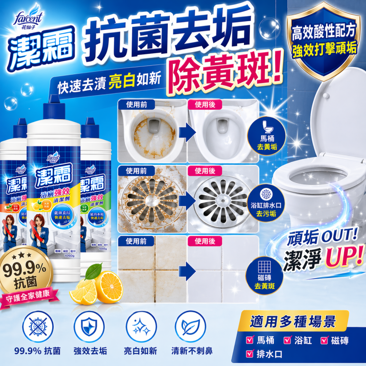 潔霜S 浴廁清潔劑 尿垢/皂垢/陳年汙垢 超強去汙99.9%抗菌