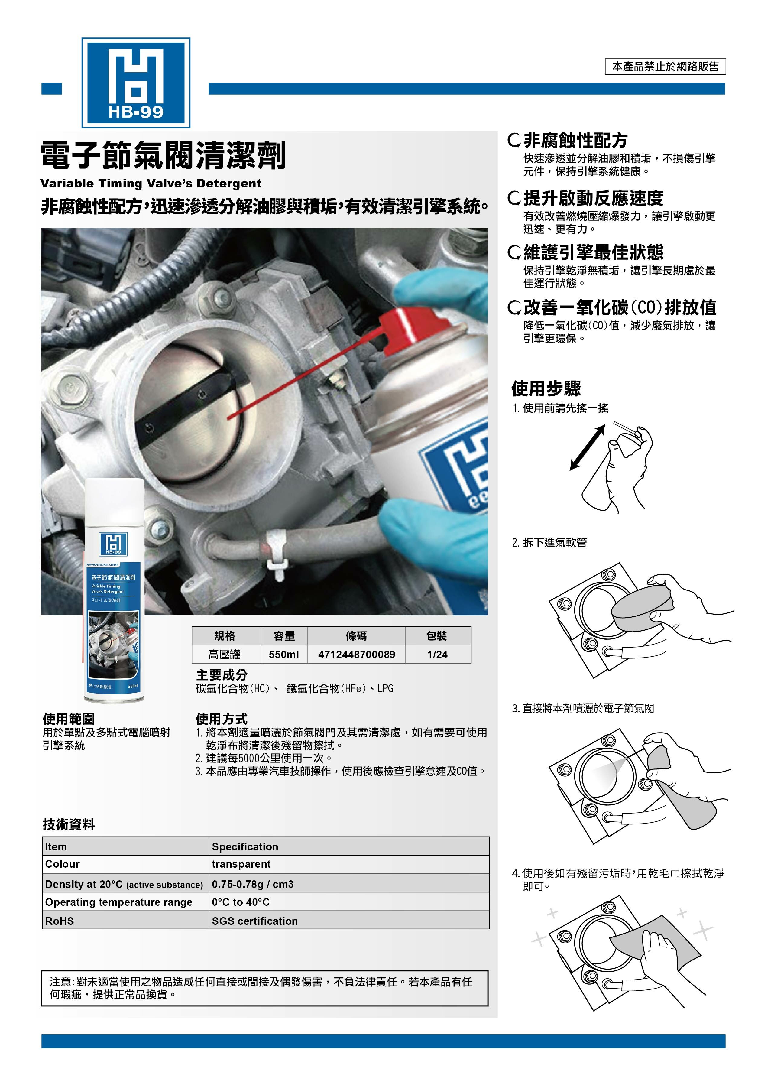 本劑擁有特殊耐高溫清潔介質,能逐步分解並去除電子系統節氣閥門及其感知器零件上的焦油積垢,有效提升擎系統效能及節省油耗等。