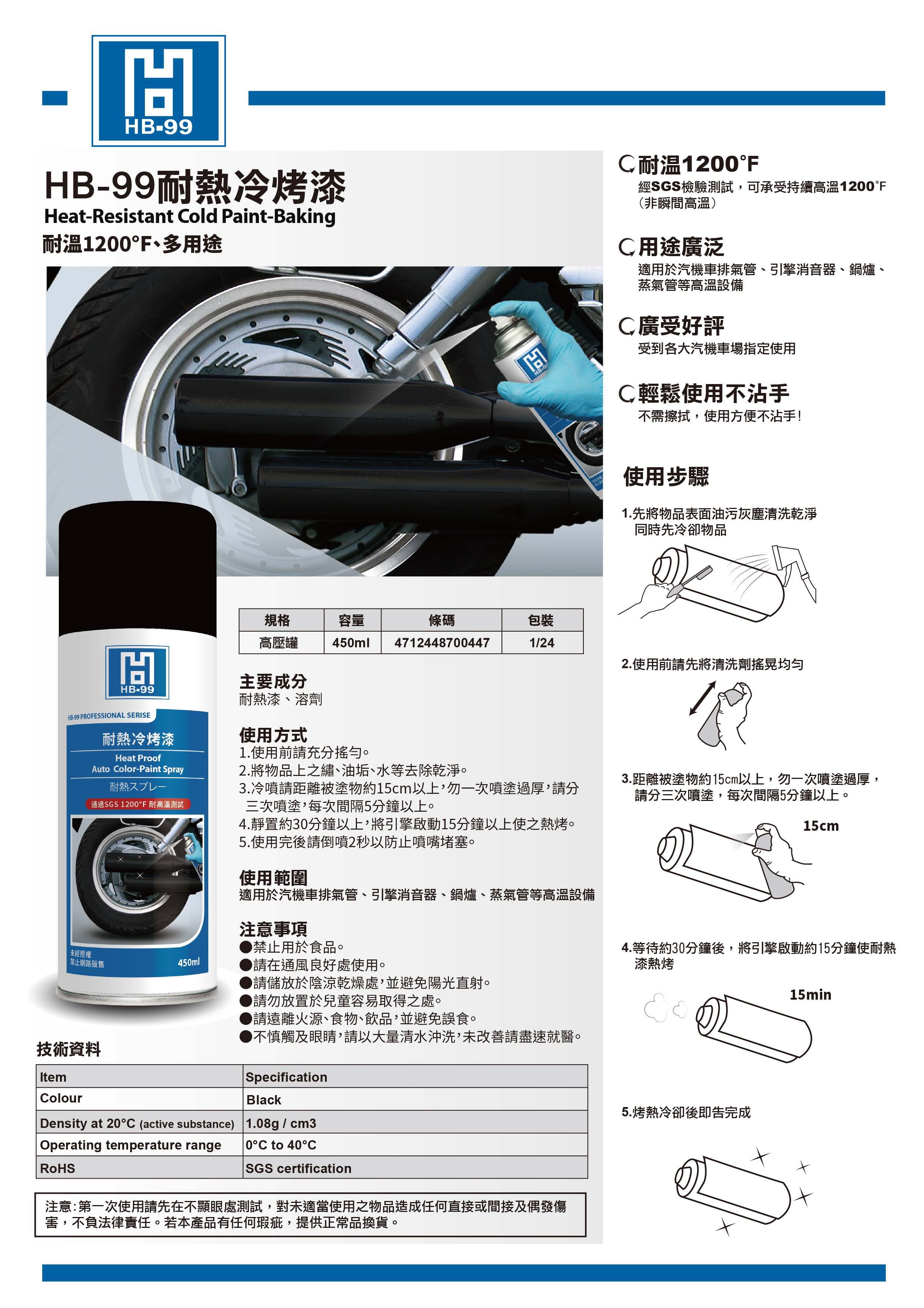 本產品經SGS測試可承受持續高溫1200°F(非瞬間高溫),並通過各大汽機車廠商嚴格測試,指定使用。
