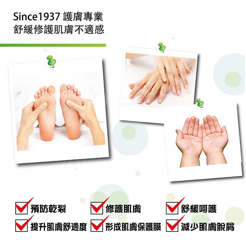 適用範圍:皮膚粗糙、龜裂、皮膚外傷、燙傷、蚊蟲咬傷、小兒尿布疹、皮膚搔癢、青春痘、香港腳、富貴手。