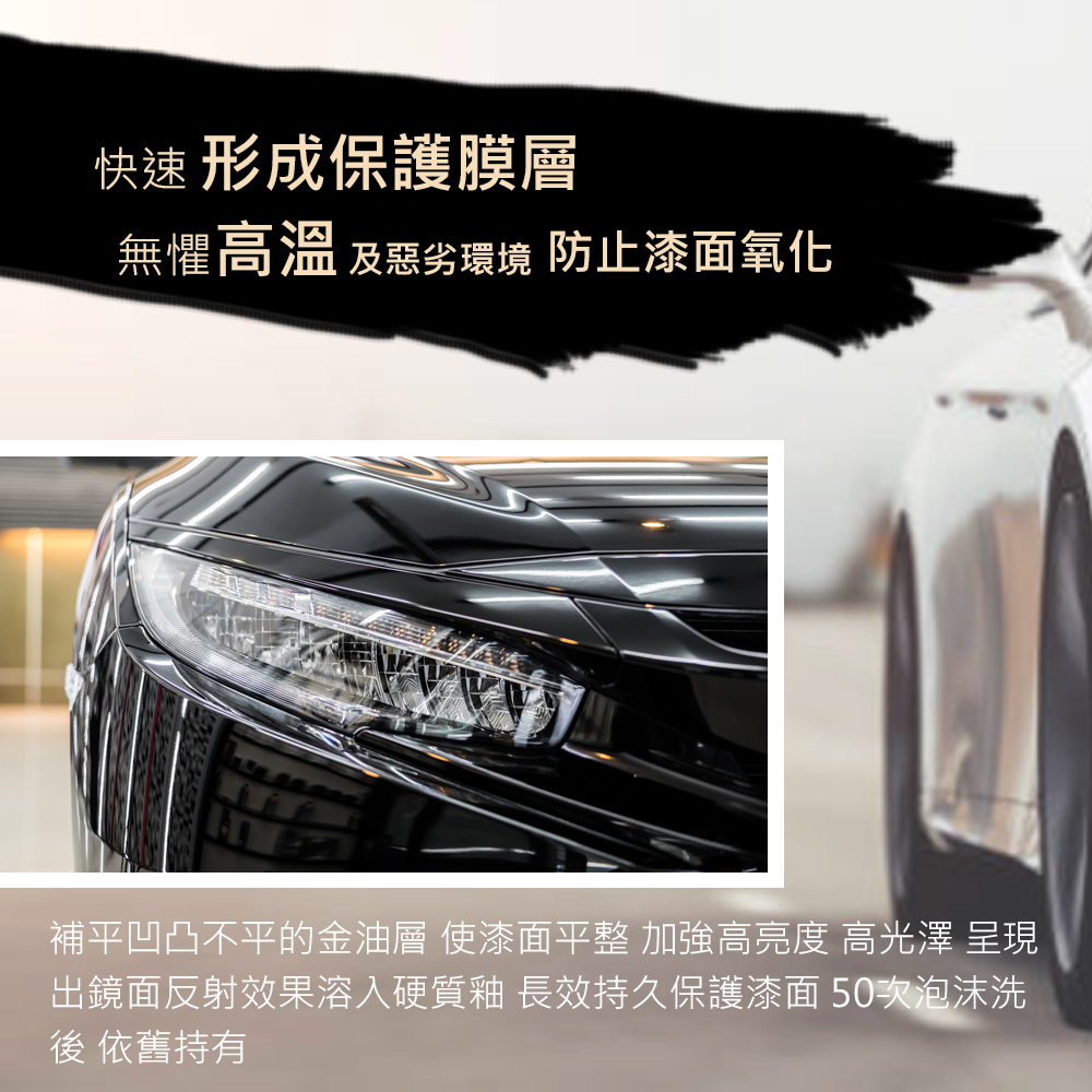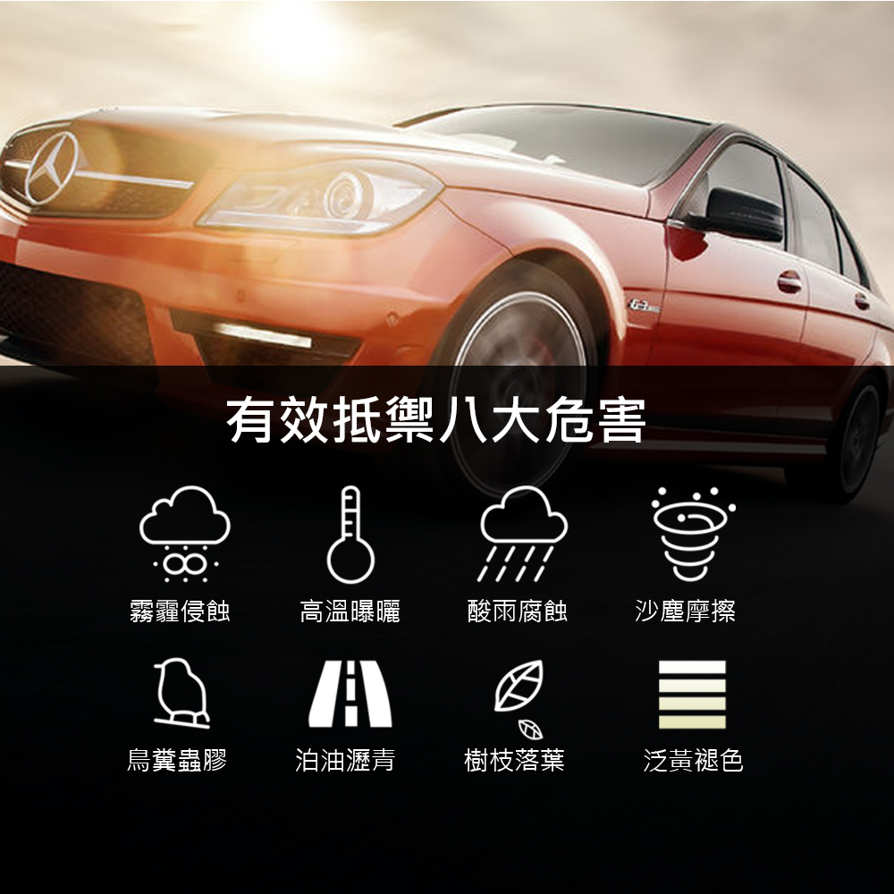 滲透力強、超強潑水力、烤漆不易退色、不易卡髒污
