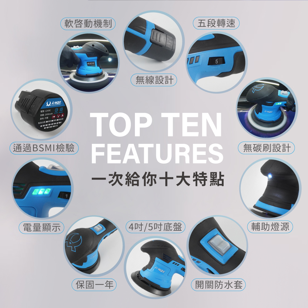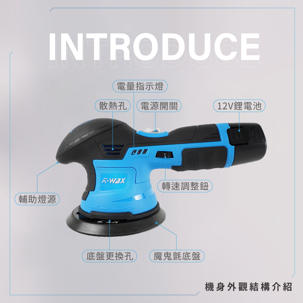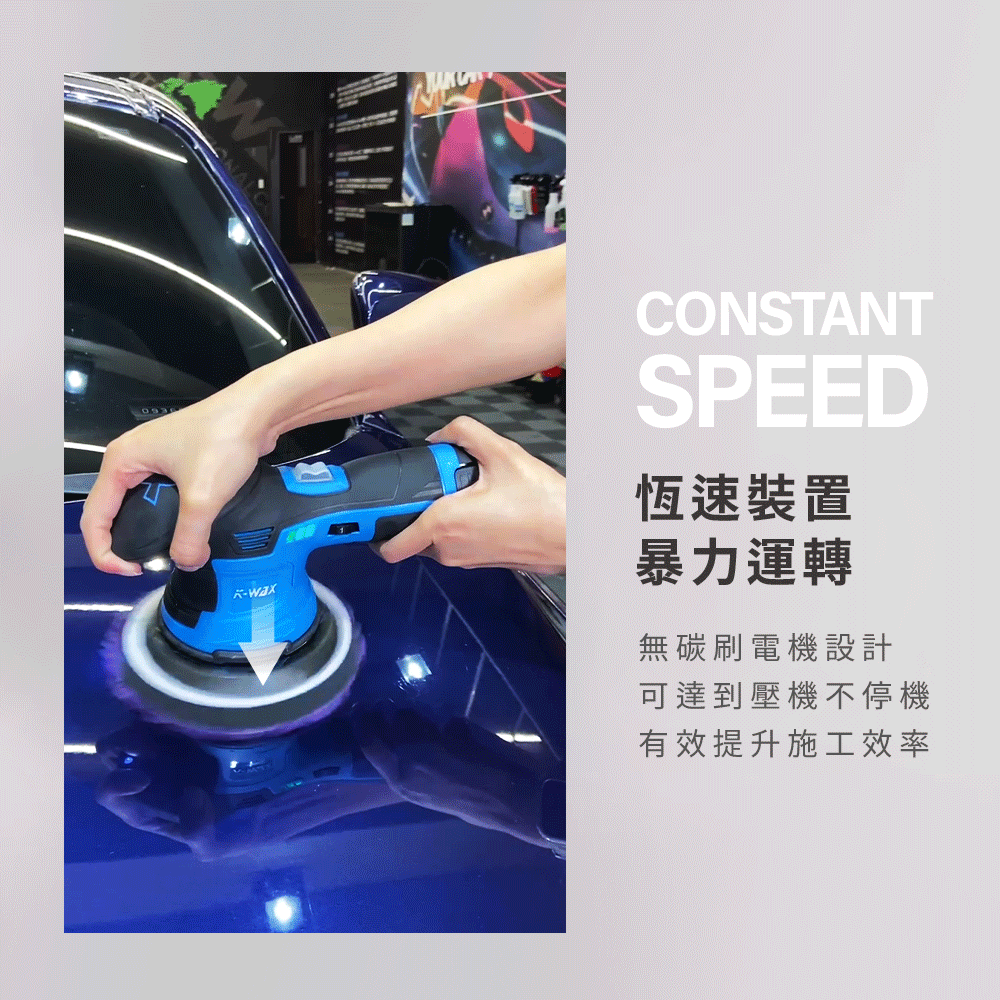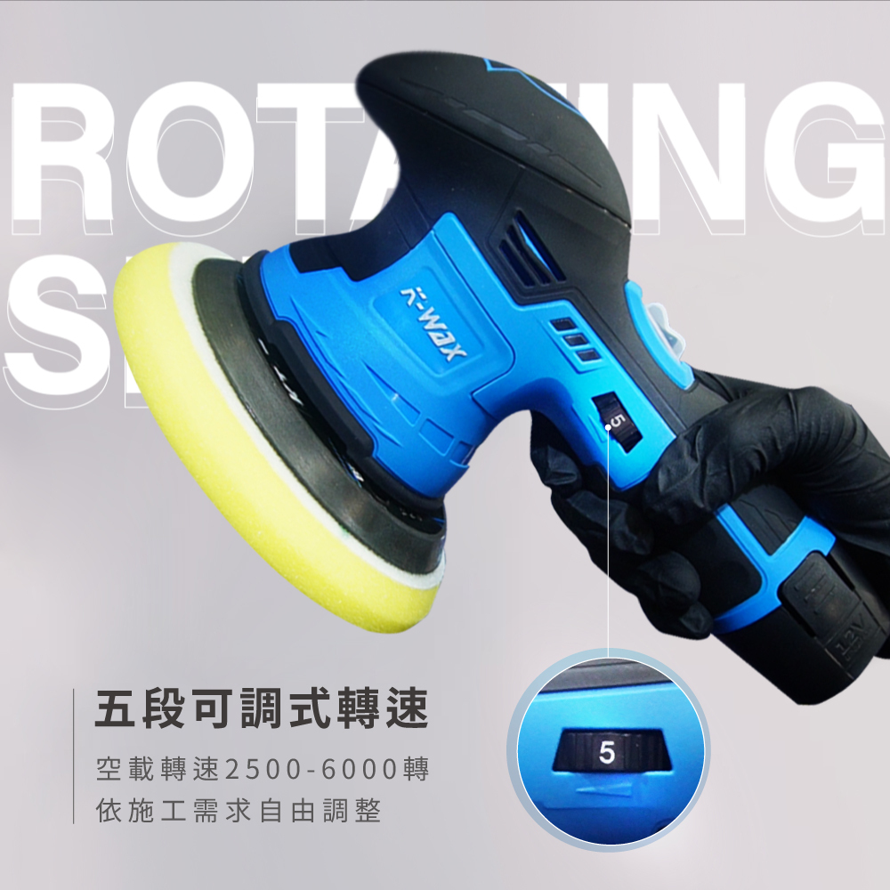 五段調速功能,可上蠟施工、輕度研磨拋光、油膜去除