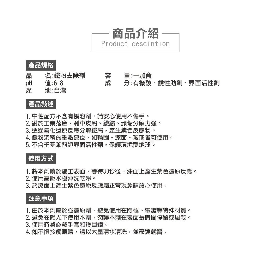 對於工業落塵、剎車皮屑、鐵鏽、頑垢分解力強。