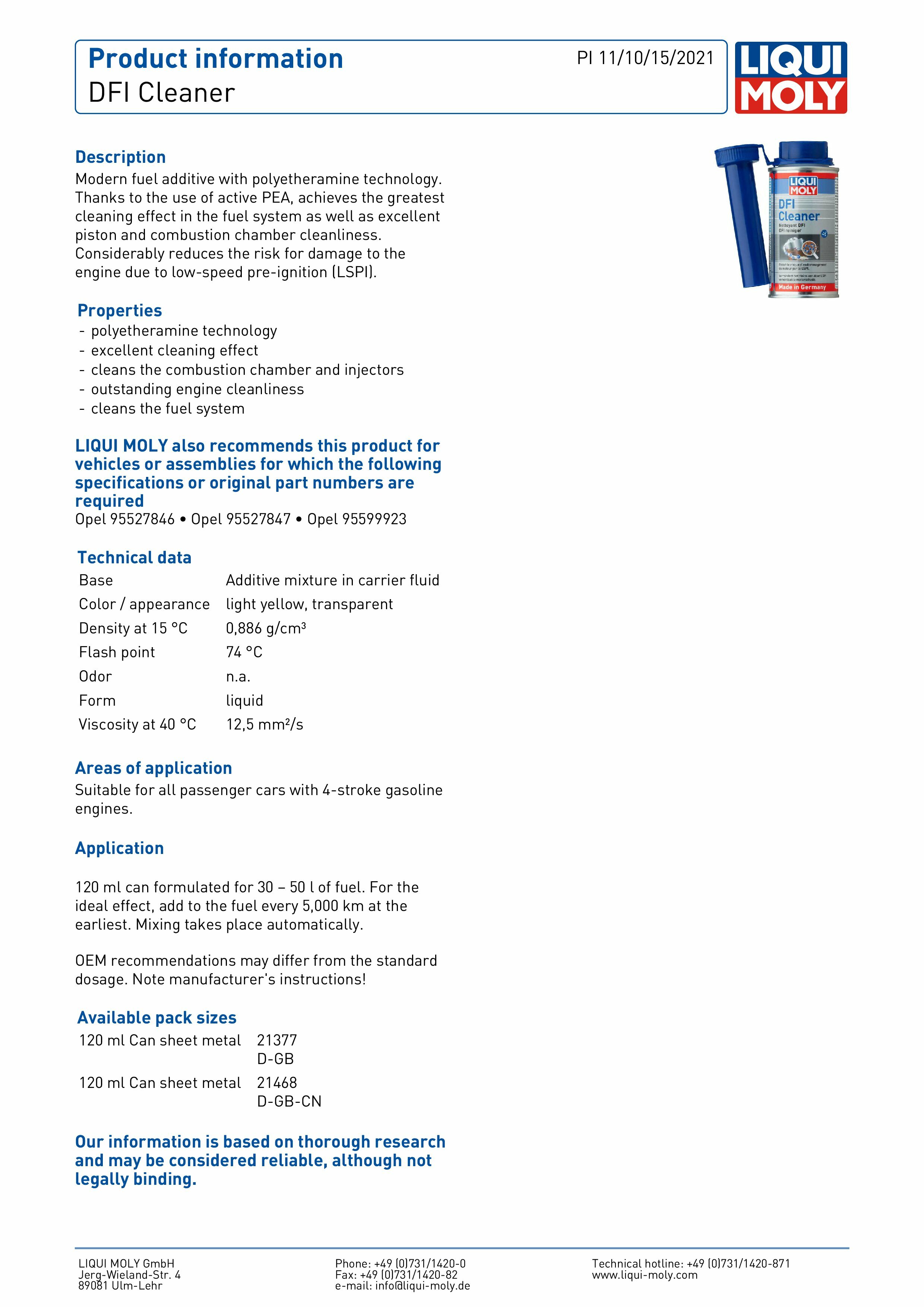 可在清潔燃油系統中的活塞和燃燒室等部件。