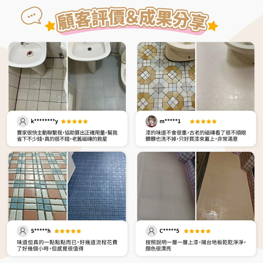 2. 老舊磁磚地板,翻新並增加摩擦力。