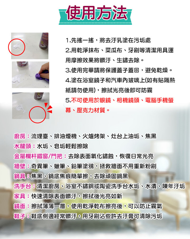 輕鬆搞定 膠痕/油汙/墨跡/鐵鏽/黴根