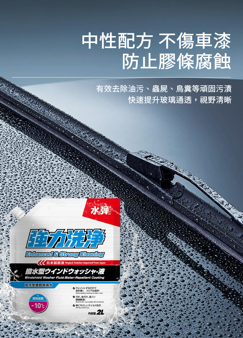 採用日本最新微分子鍍膜因子配方,滲透性強,撥水速度快,腹膜整體均勻。在發揮穩定的高防水性能和清潔功能的同時,能有效預防油膜出現。快速提升玻璃通透,視野清晰。
