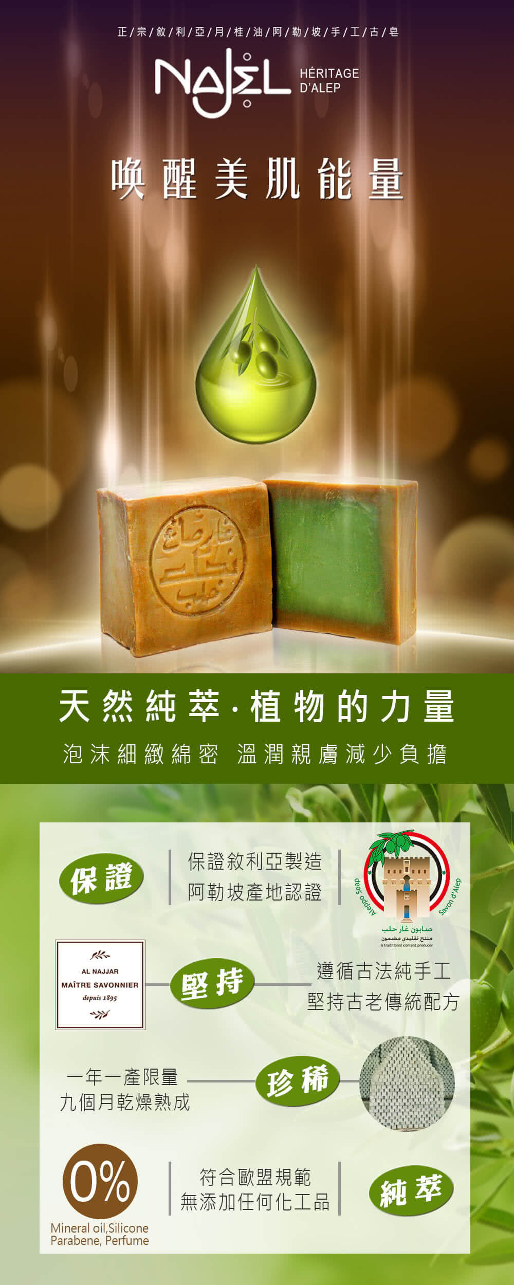 『完美比例配方』採用初榨橄欖油完美比例配方,堅持天然植萃配方。