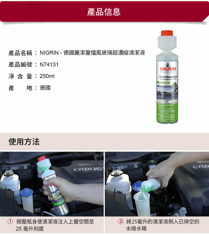 降低摩擦阻力,軟化並潤滑水撥膠條,延長水撥的使用壽命