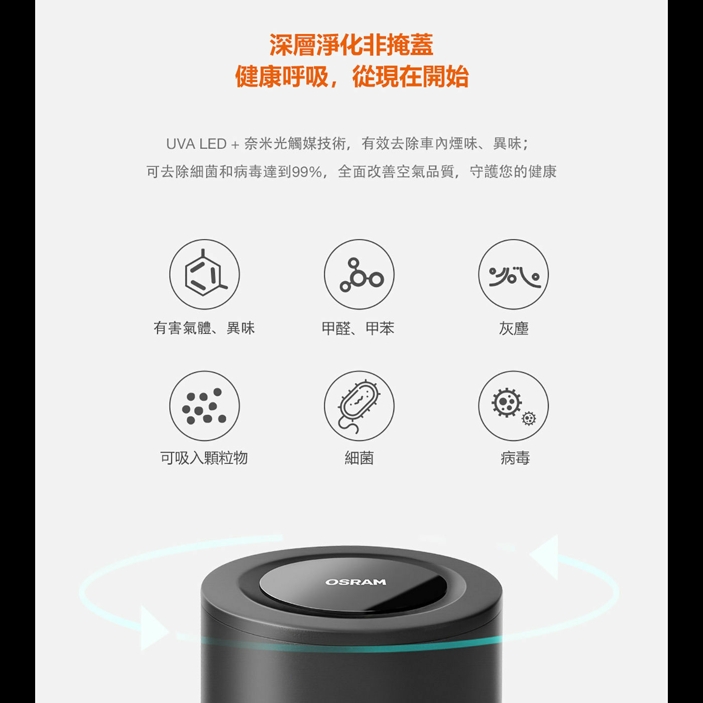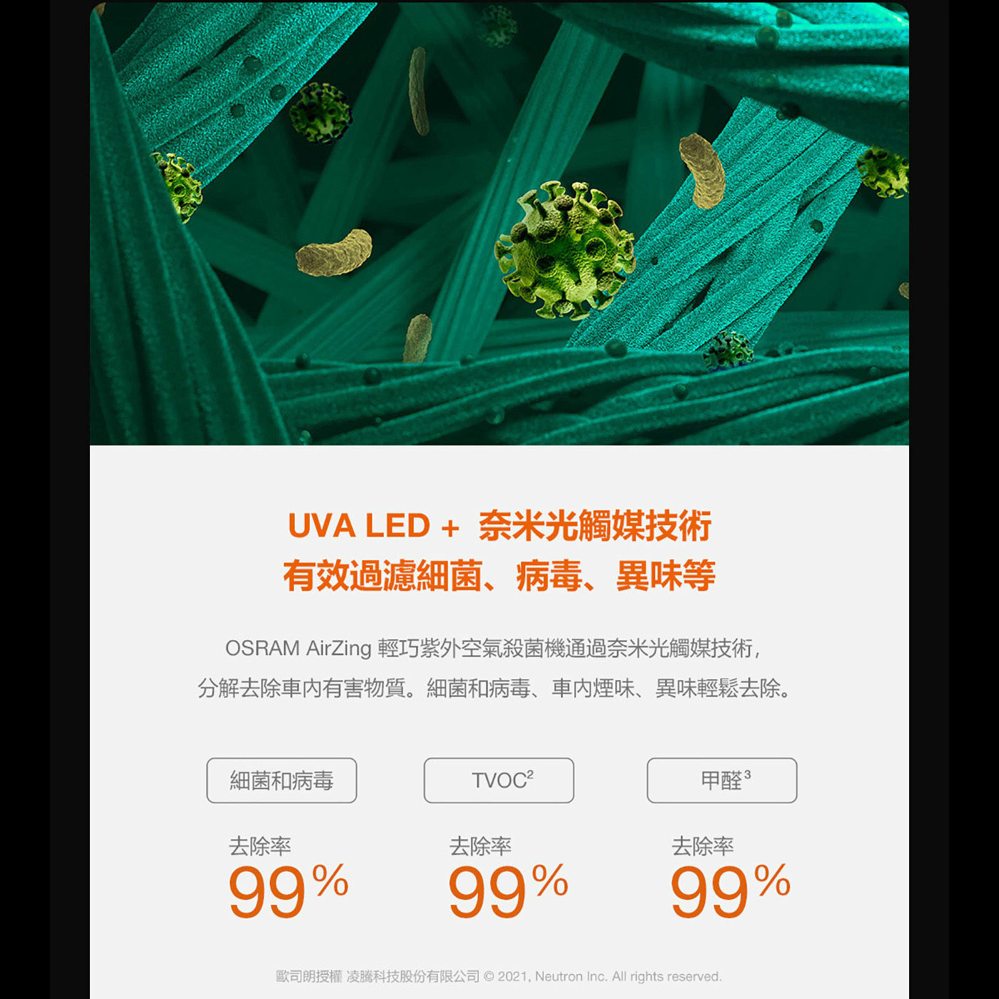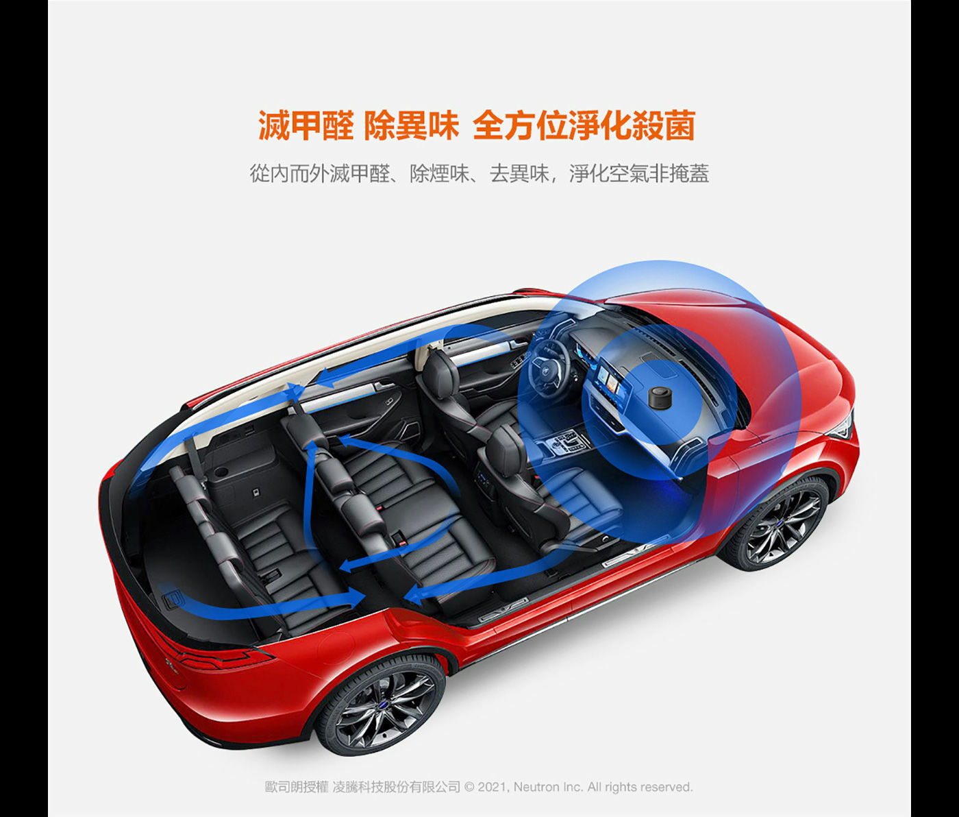 UVA LED+奈米光觸媒技術,有效去除車用煙味、異味