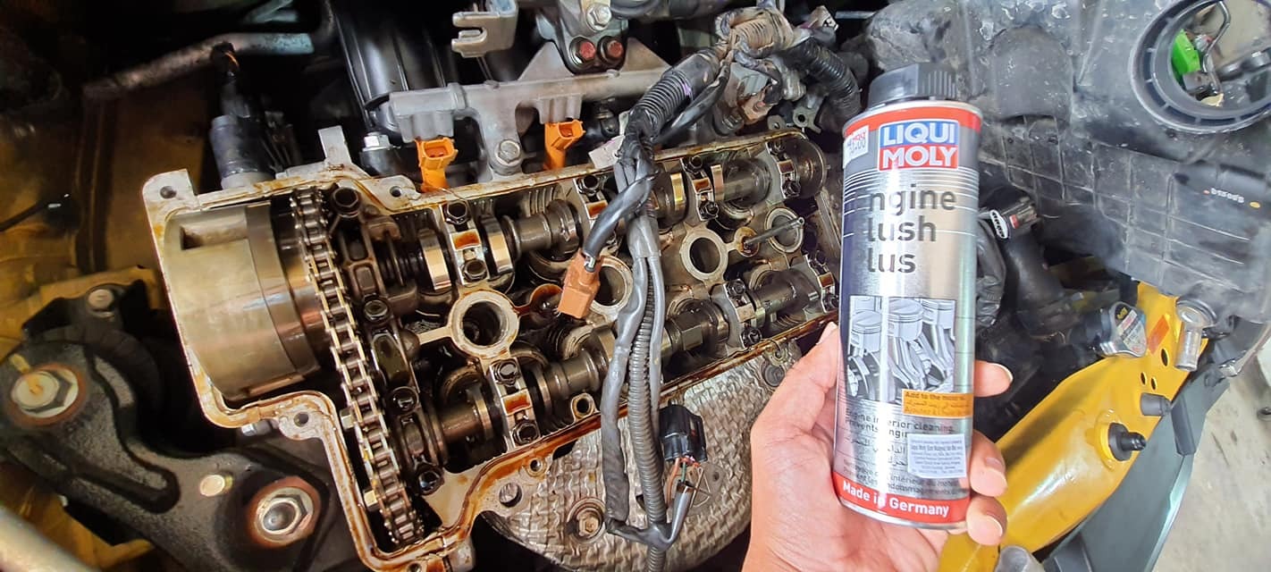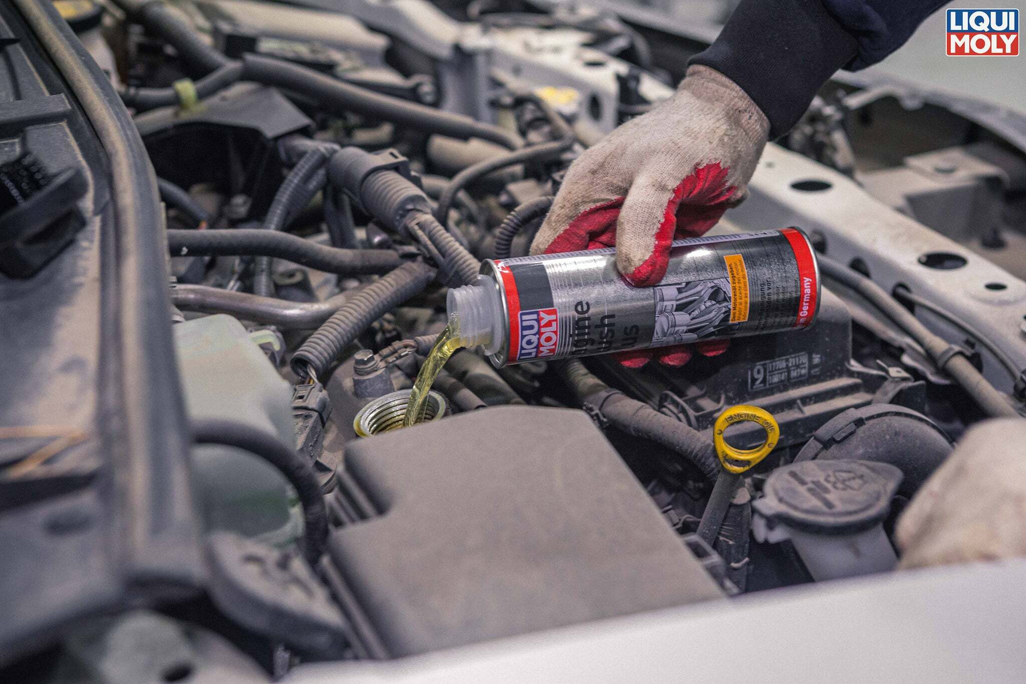 2. 然後熄火,漏出舊機油前加入整瓶LIQUI MOLY Engine Flush Plus