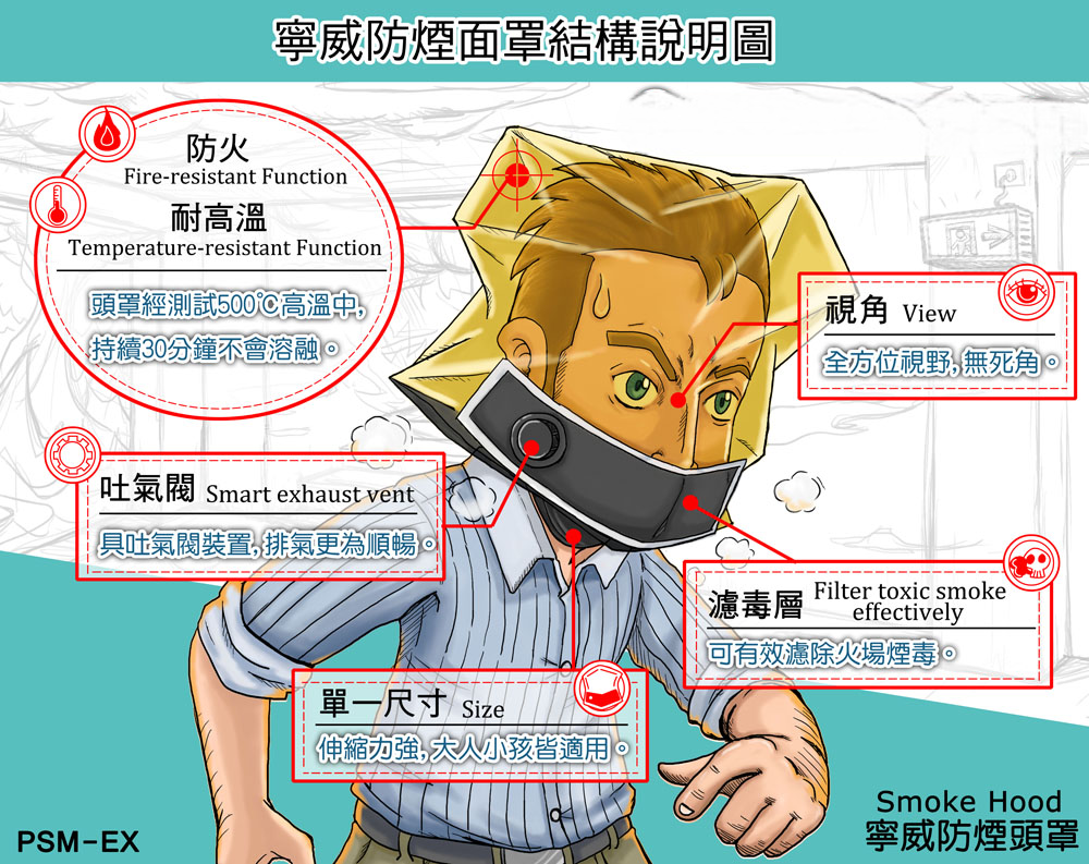 頭罩主體材質為POLYIMIDE FILM製作,可耐高溫最高達500度且不會熔融龜裂。