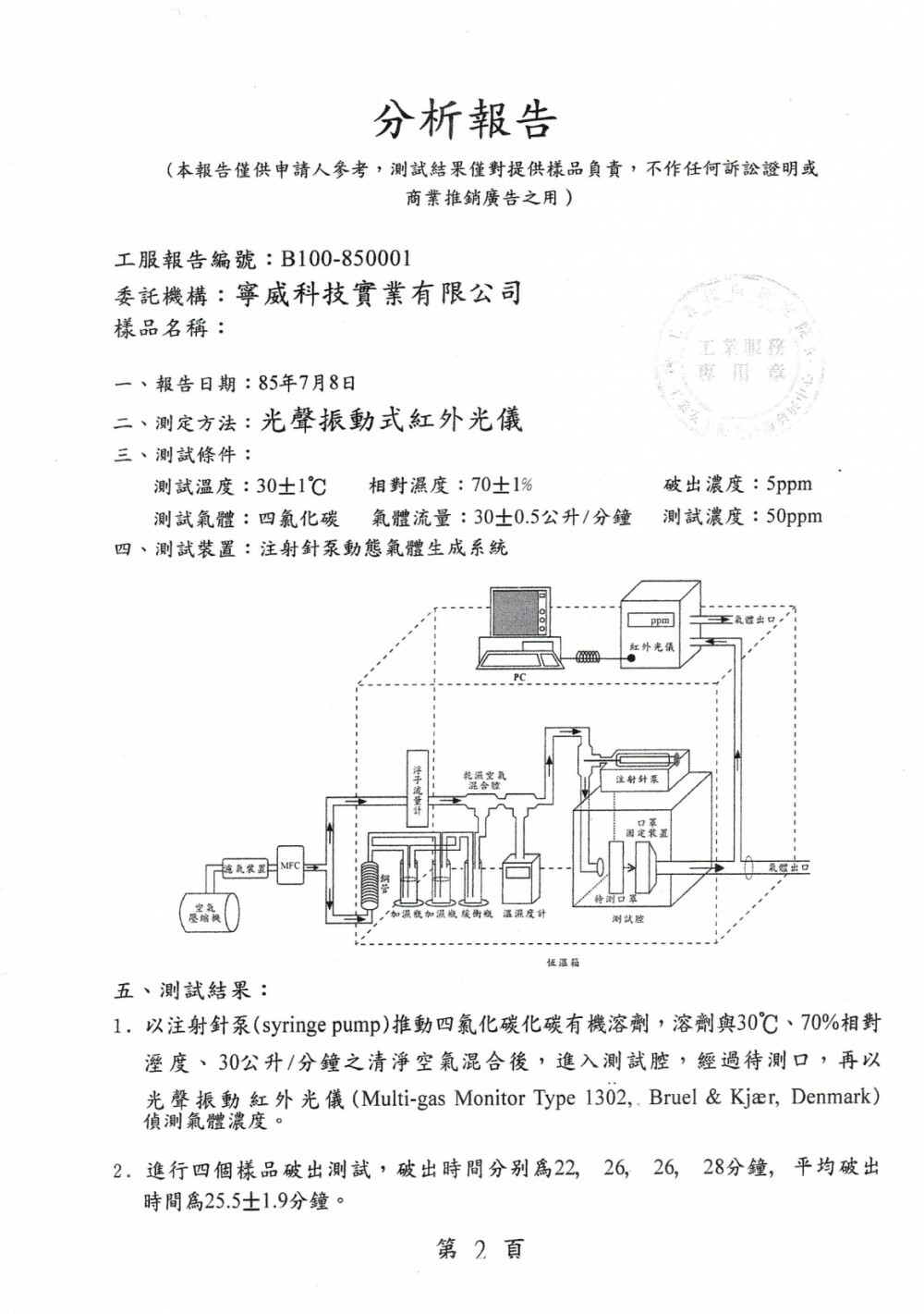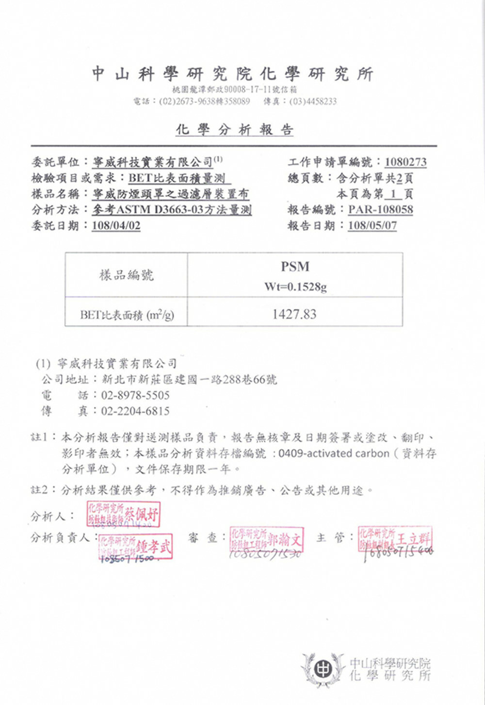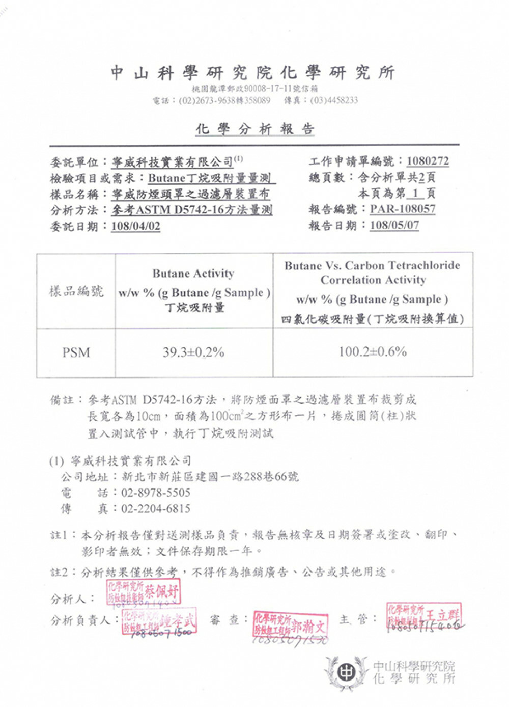 過濾採用活性碳多層濾片, 可有效濾除煙毒粒子,經實驗時間最長達28分鐘。