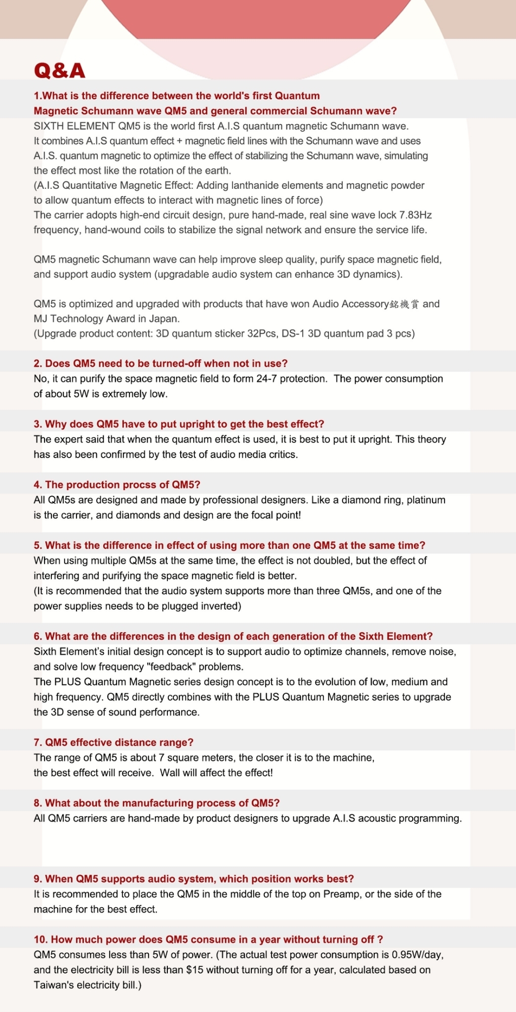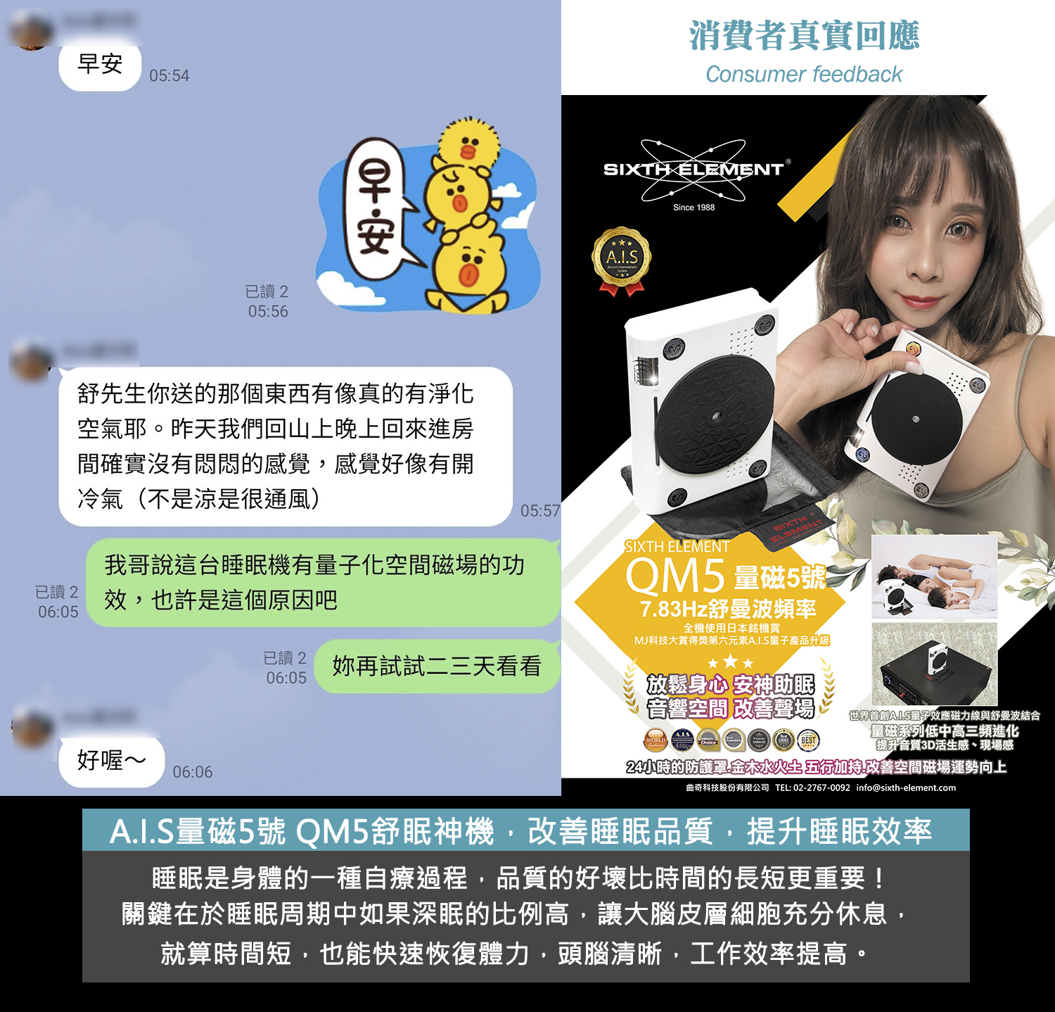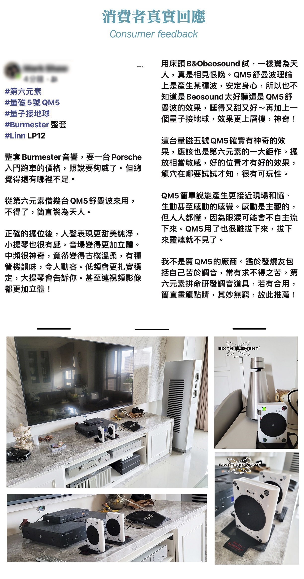 QM5量磁舒曼波能幫助改善睡眠品質、淨化空間磁場、支援音響系統(可升級音響系統的3D活生感現場感)。