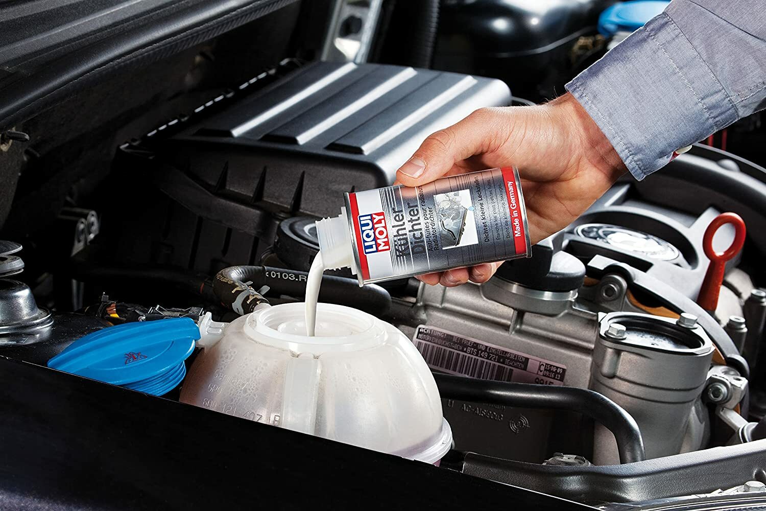 The Liqui Moly Radiator Stop-Leak is a special additive for small leaks inside of the cooling system. Small hairline cracks inside of the cooling system can be the reason for a higher coolant consumption and high motor temperatures. Overheating and power decreases can be a result. By using the Liqui Moly Radiator Stop-Leak, the small leaks get fixed and the cooling system works without any issues.