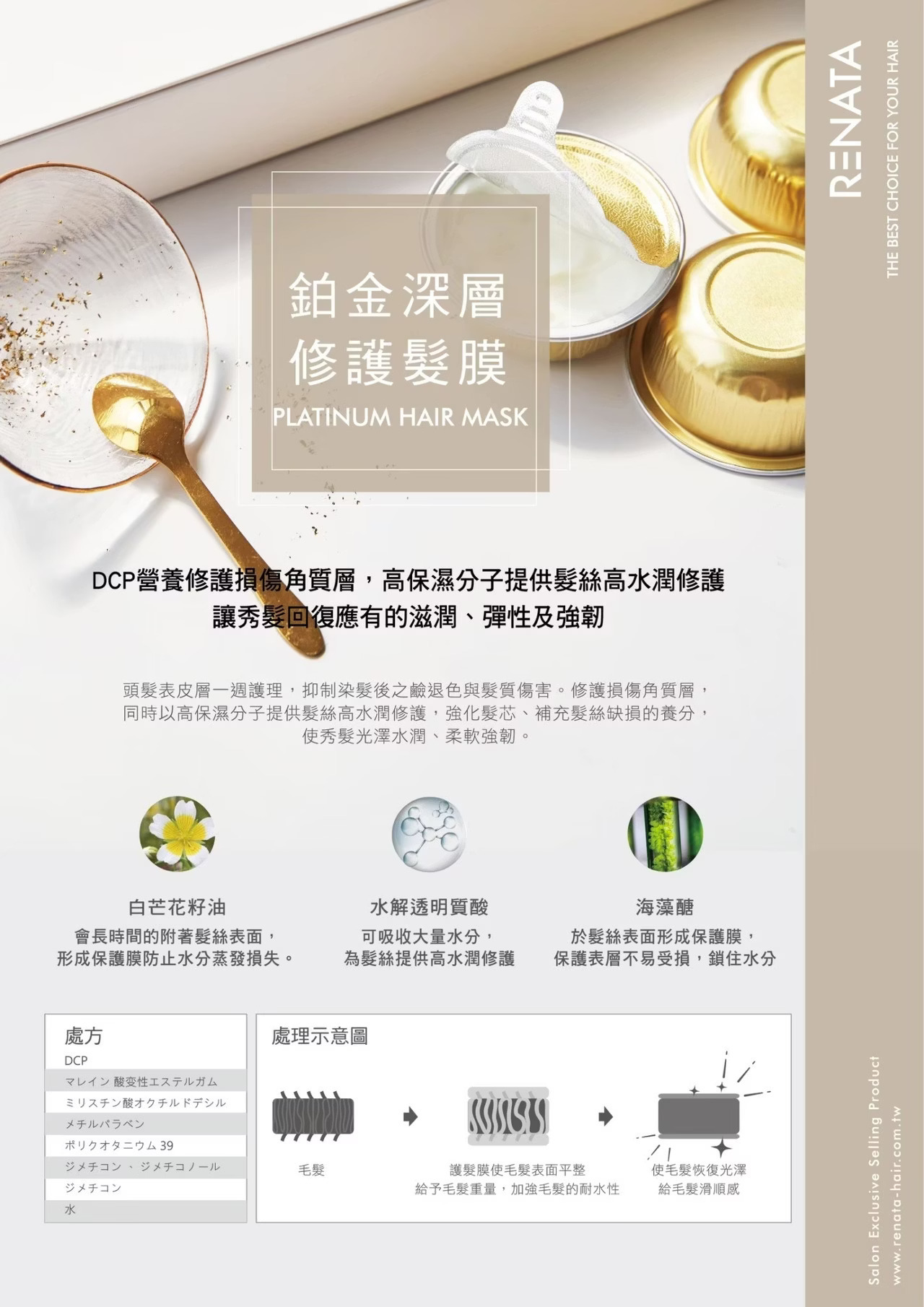 Renata 蕾娜塔 鉑金修護髮膜 30g 沙龍專用髮膜 護髮素 深層修護 台灣正品公司貨