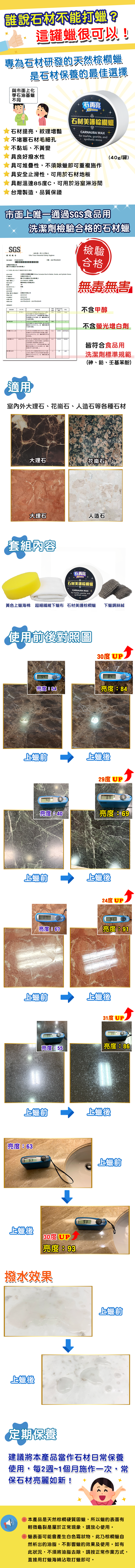 室內外各式石材表面之日常美護、増艷増亮、防水