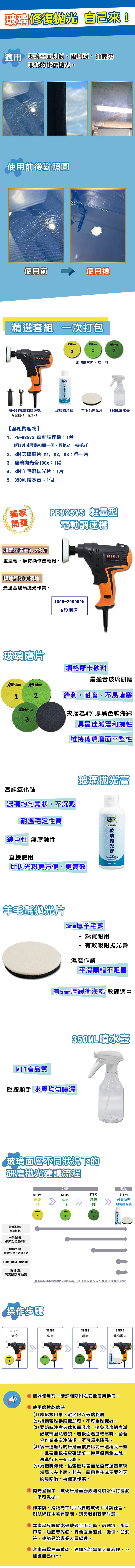 適用:玻璃平面划痕、雨刷痕、油膜等瑕疵的修復拋光