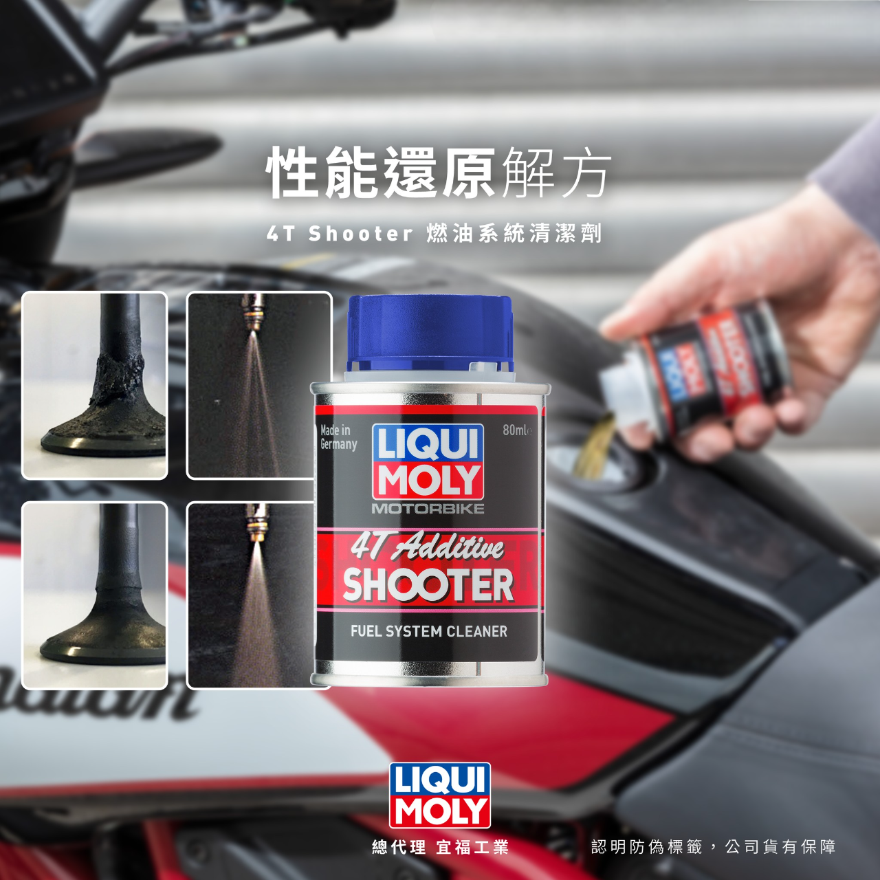 提升引擎性能、去除燃油系統、氣閥門、火星塞及燃燒室的污物堆積。