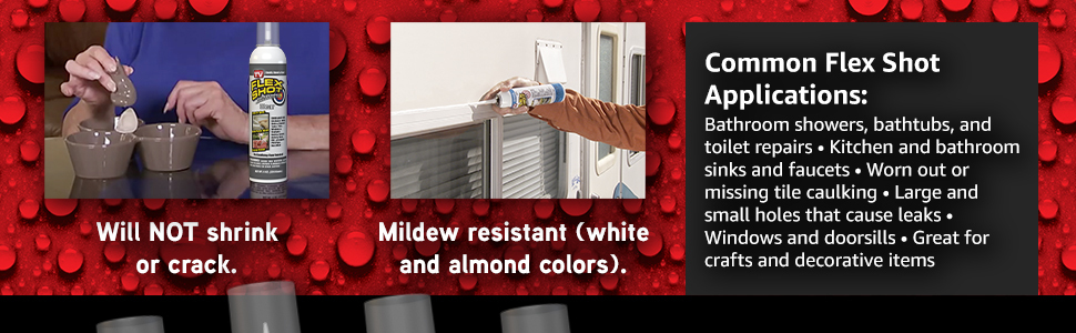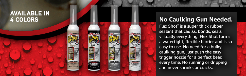 A: Flex Shot® comes in multiple colors to match almost any décor: white, almond and black. And then there’s always clear, which goes with anything and everything! We do not recommend painting over Flex Shot®.