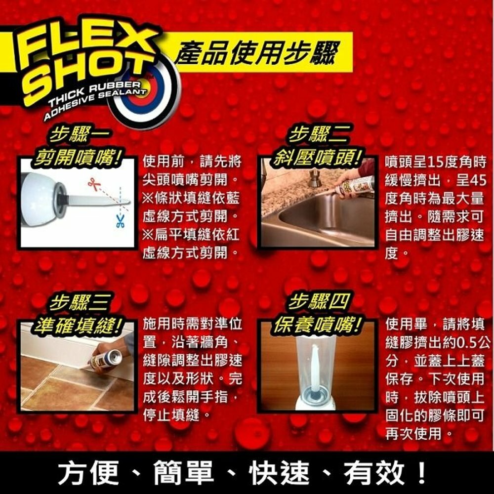 A: Yes, extension tubes are reusable. After using Flex Shot® with the extension tube, you can leave the extension tube affixed to the can of Flex Shot® and dispense just enough product to leave a 1/8” bead sticking out of the extension tube. The 1/8” bead will keep the remaining product in the can from drying out. Simply pull out the dry 1/8” bead prior to using Flex Shot®.