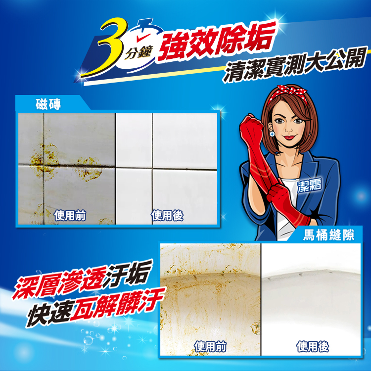 3倍高強效配方,3分鐘徹地清除陳年頑垢