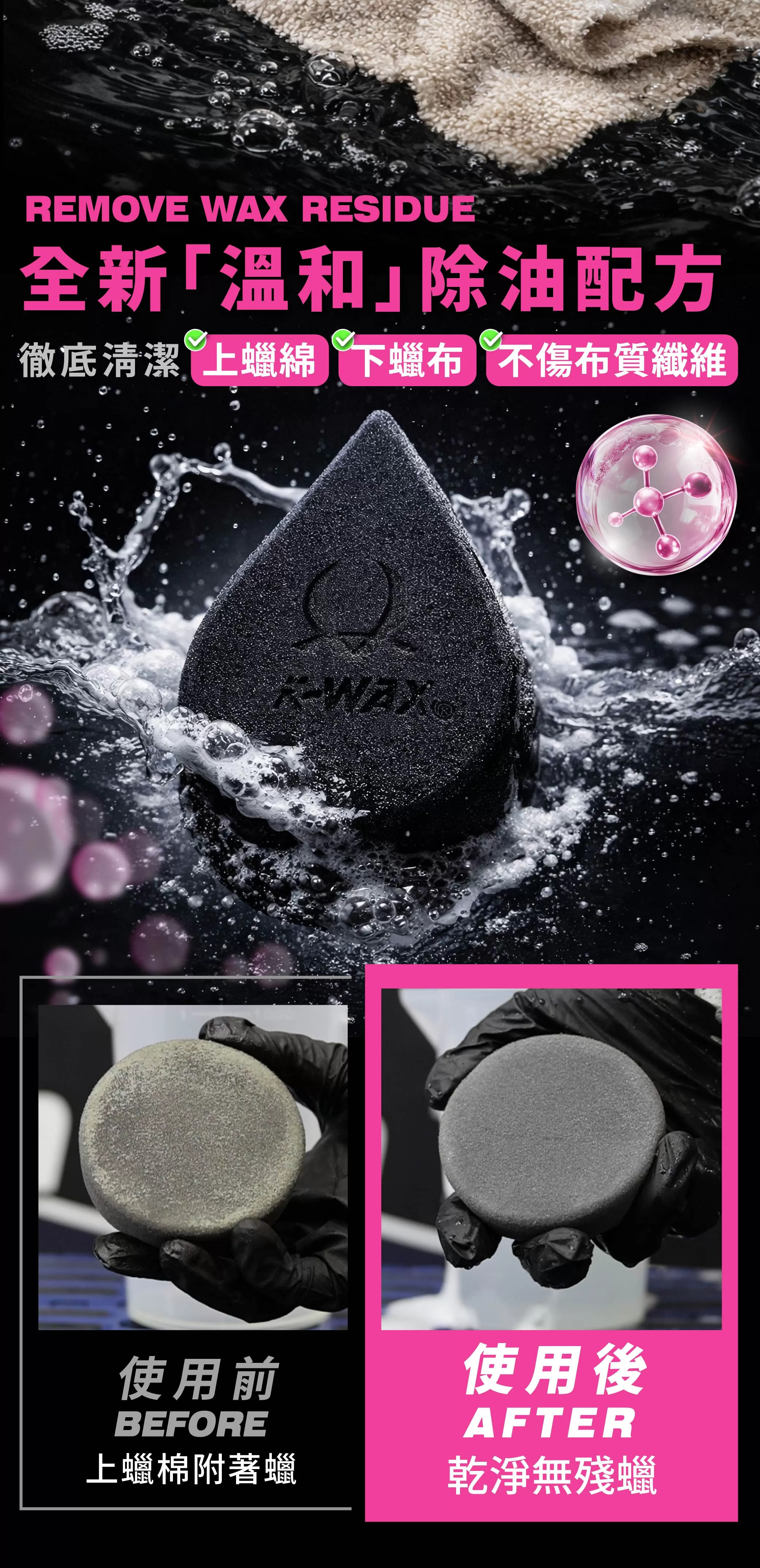 可用於洗淨上蠟綿及收蠟布