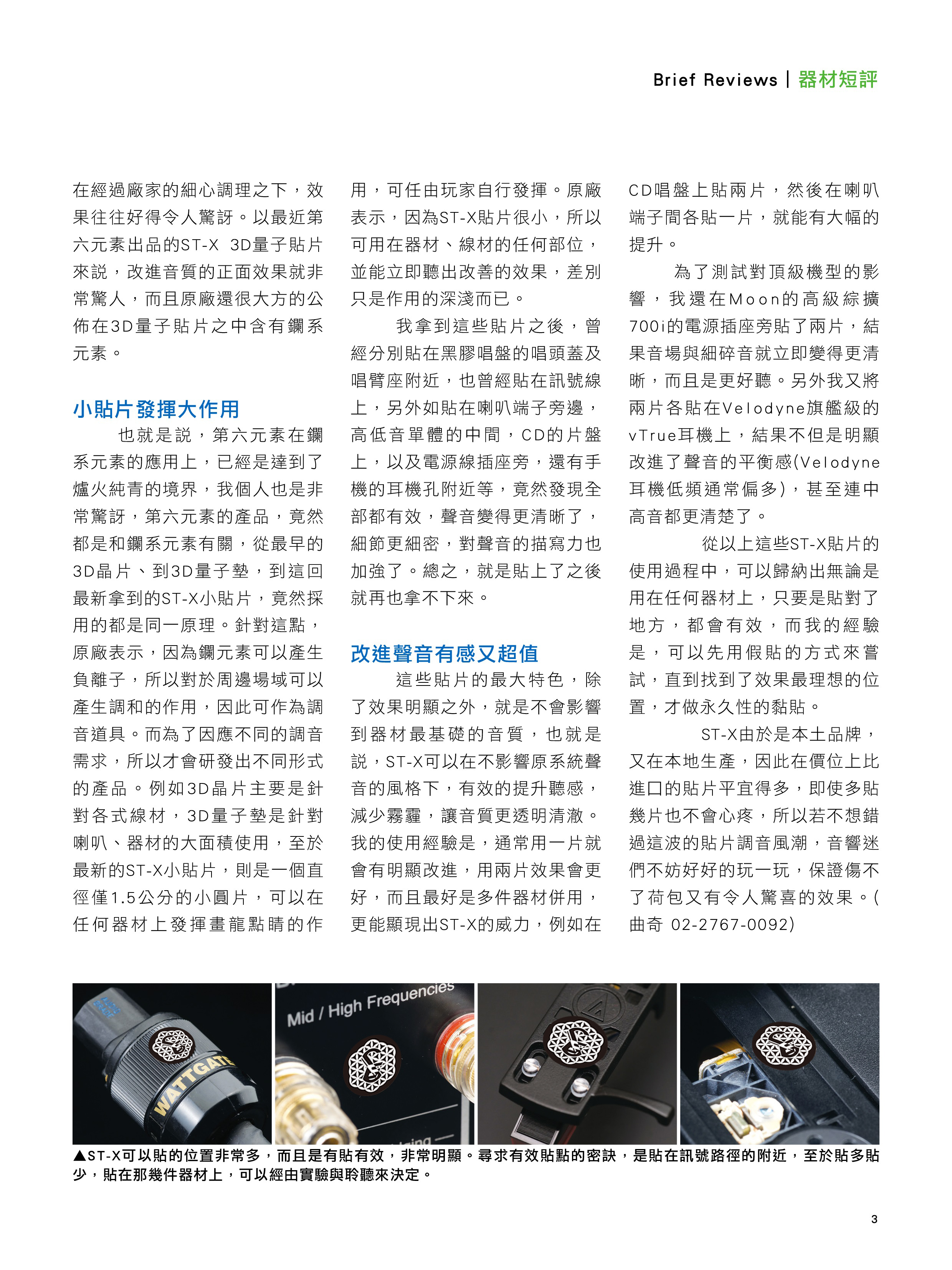 改善3D音像,使聲音輪廓清楚緊實,音質通透、層次更細密、音場更寬深、樂器間的分離度也會變好,還可抗磁波與長波的干擾
