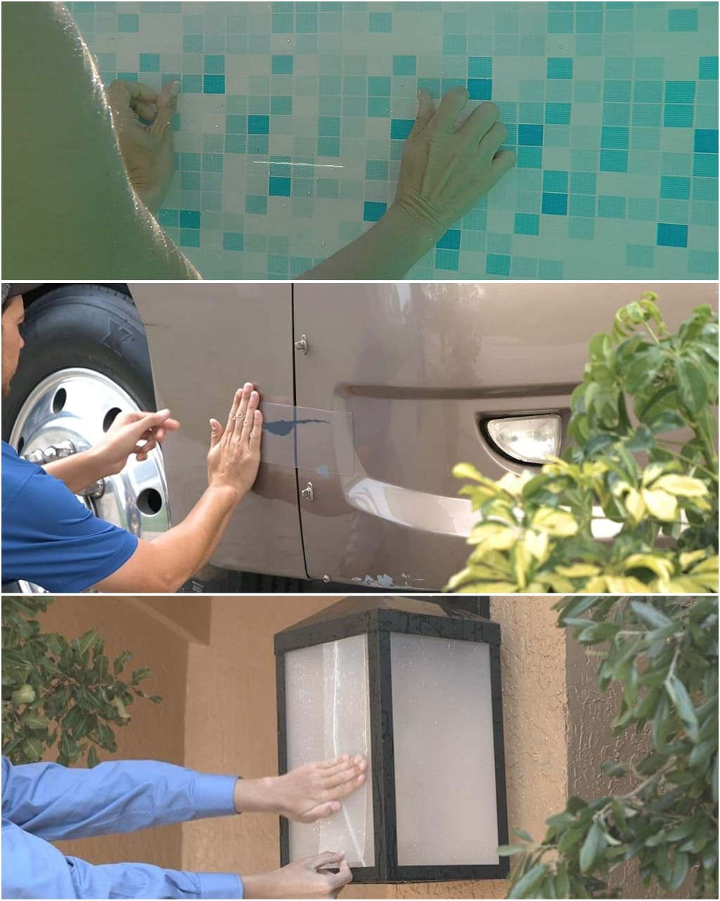 FLEX TAPE具有強大黏著力和厚實柔韌的橡膠結構,能適應任何形狀和表面,甚至水下也能使用。隨著時間和下壓力的增加,其黏著力更強。耐紫外線,不含揮發性有機物,能承受極端高溫和氣候。適用於PVC、丙烯、金屬、鋼鐵、銅、鋁、木材、陶瓷、瓷磚、玻璃、橡膠、玻璃纖維、混凝土、石材、水泥、混凝土、輕隔間、屋頂、塑料、織物、乙烯基等。常見使用有水管補漏、屋頂貼補、浴室、泳池,一般家庭修繕用。