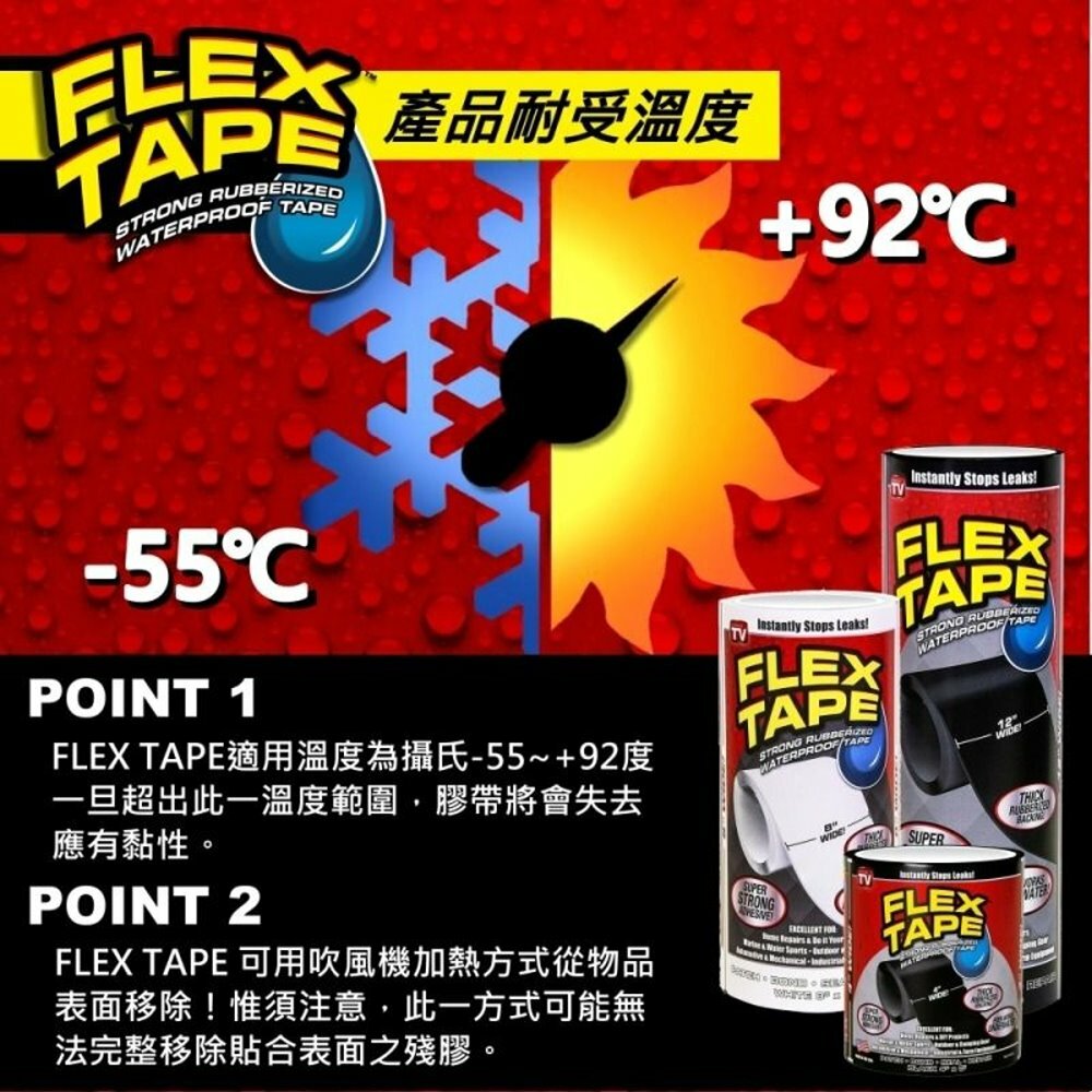 A: Flex Tape is best applied to surface temperatures from 20°F to 120°F. Flex Tape can withstand temperatures from -70°F to 200°F.